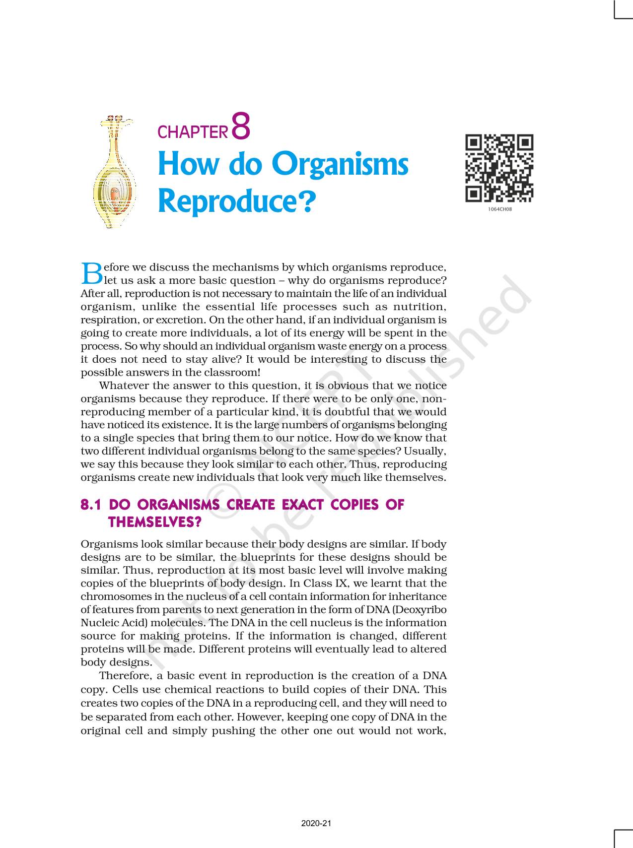 Reproduction, unlike other life processes, is not essential to maintain the life of an individual organism.