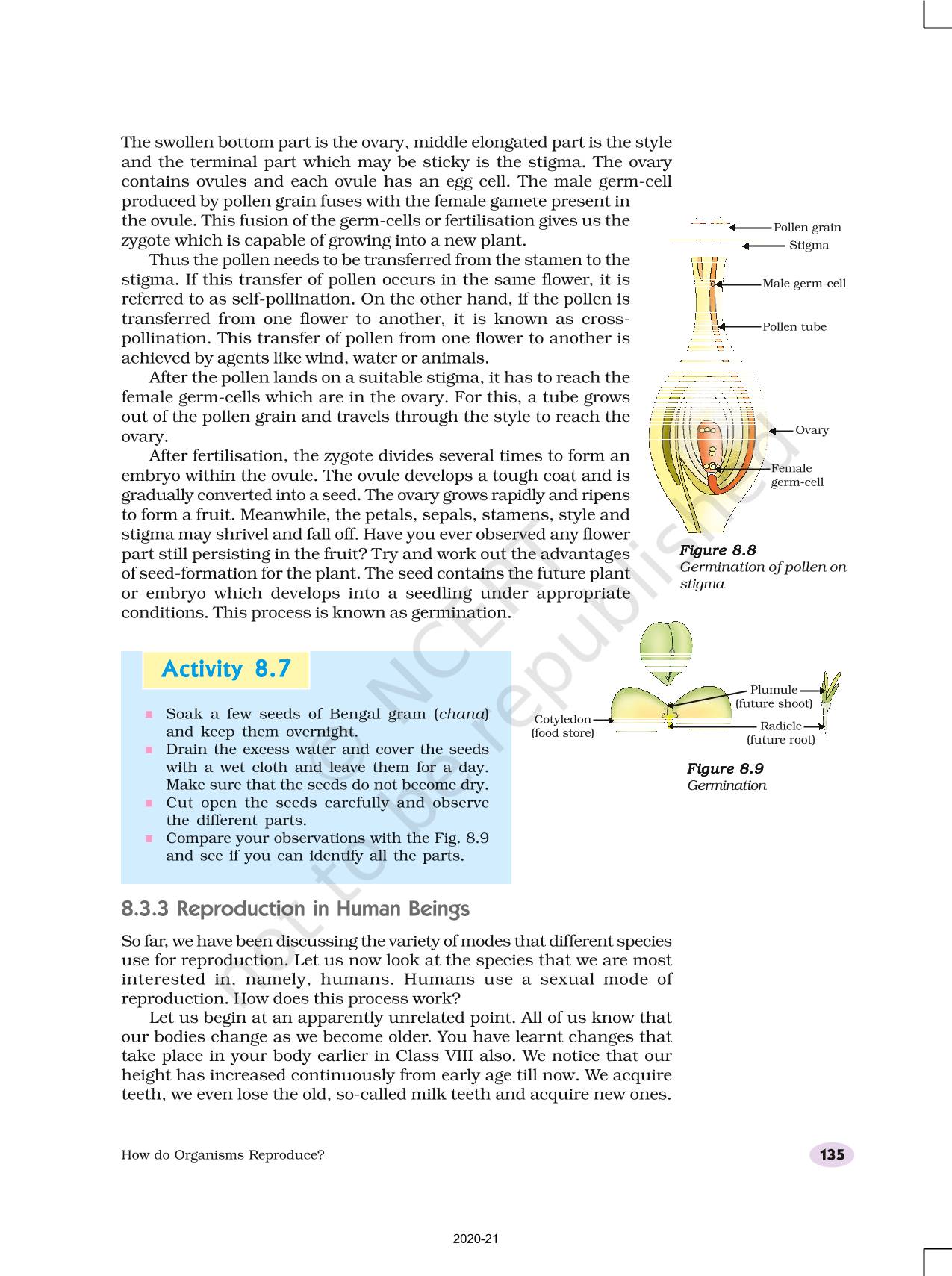 Reproduction in flowering plants involves transfer of pollen grains from the anther to the stigma which is referred to as pollination. This is followed by fertilisation.