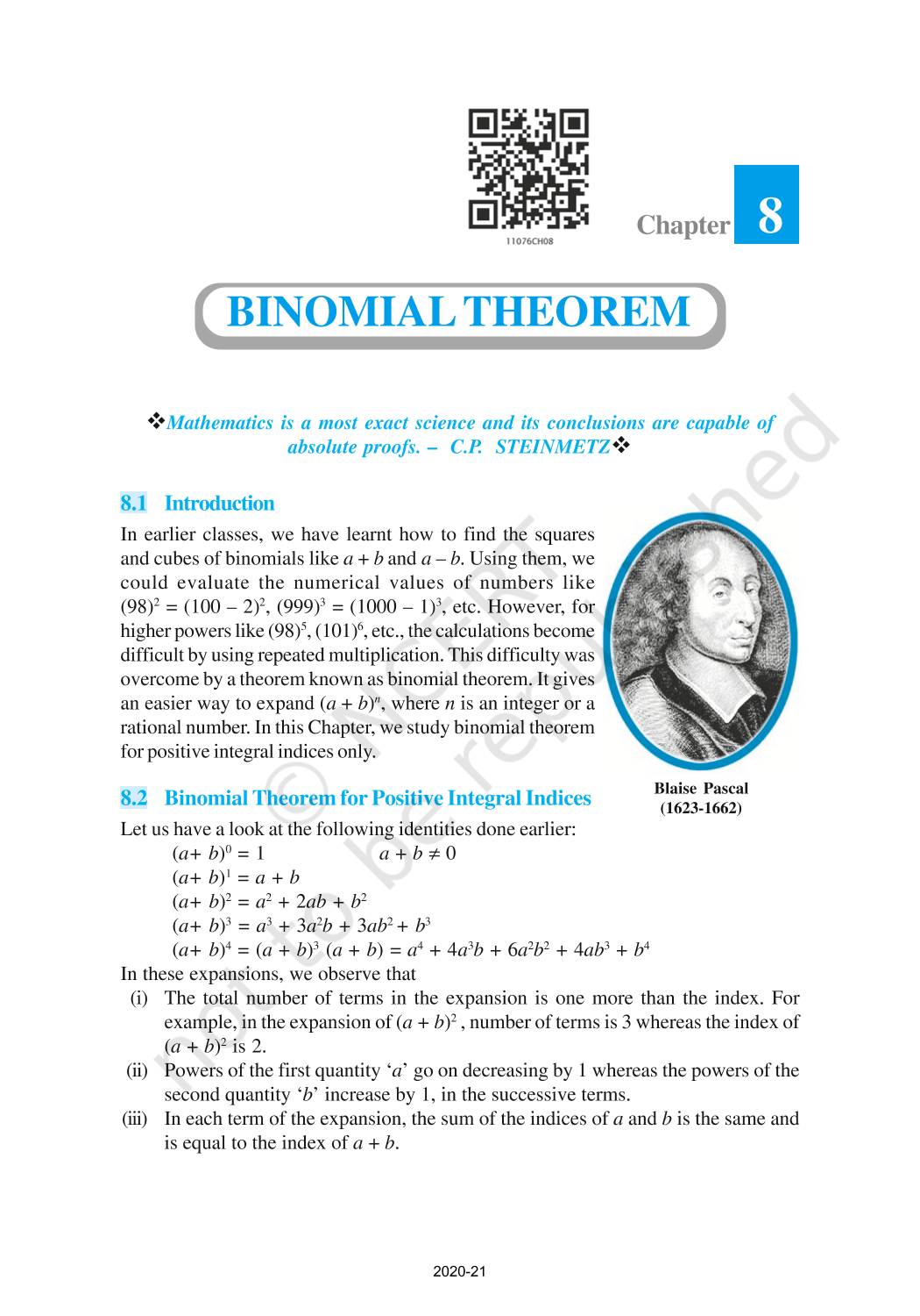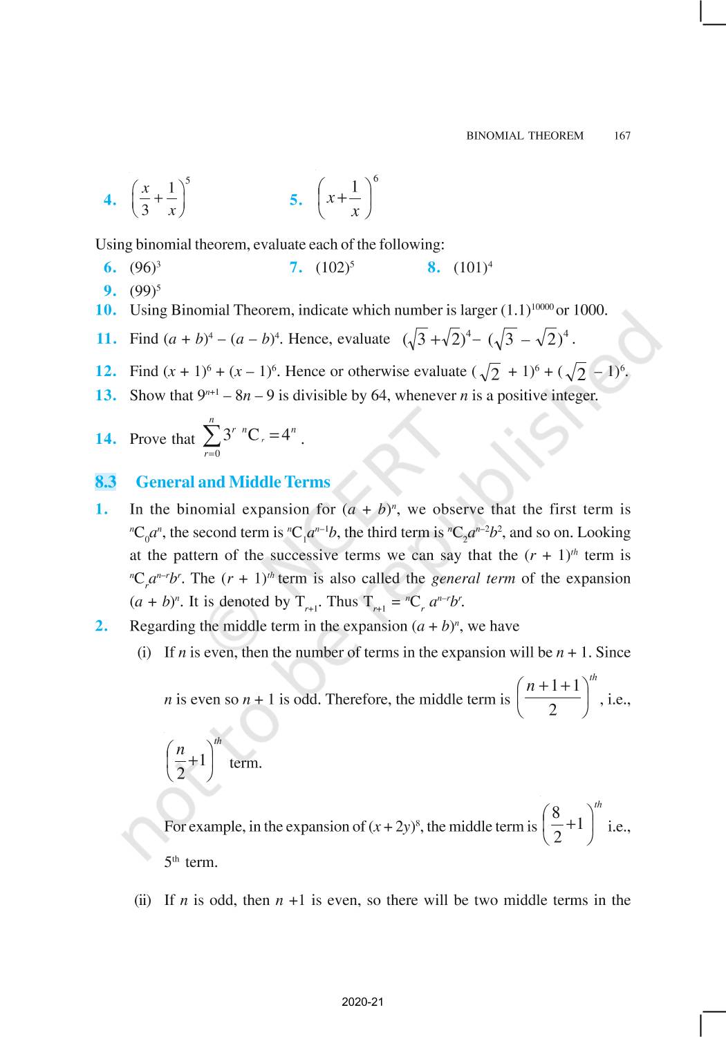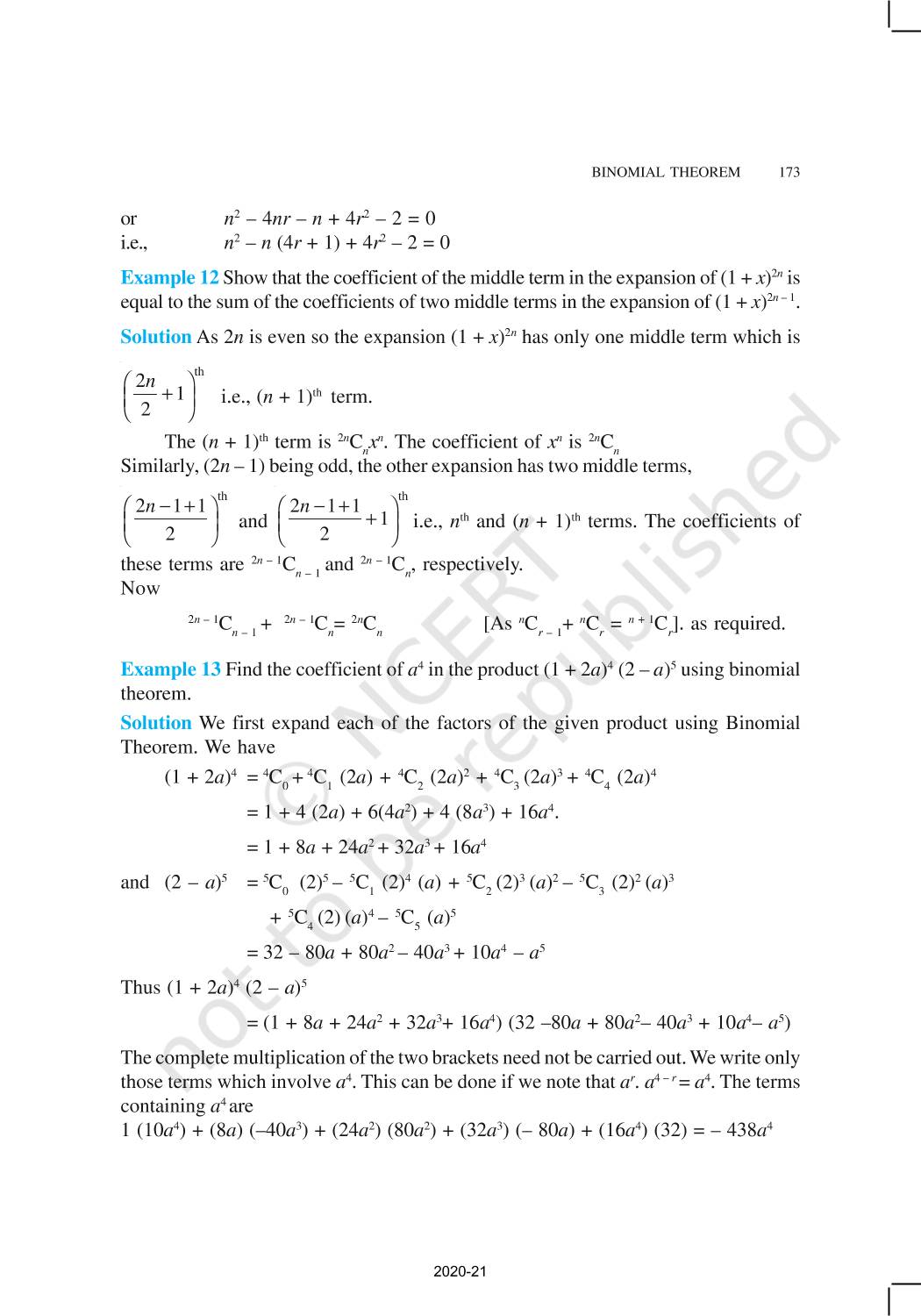 The time when students had limited options of choice for NCERT books wherein they need to go to the bookstore to buy the books but here at BeTrained.in, you can read the complete chapter-Binomial Theorem of NCERT books for class 11 Mathematics. If CBSE class 11 students are finding it hard to search for NCERT Mathematics books online, then this is the right place as we have provided the textbooks of NCERT chapter wise. These books are available on our website for free along with NCERT Solutions and Exemplar solutions.