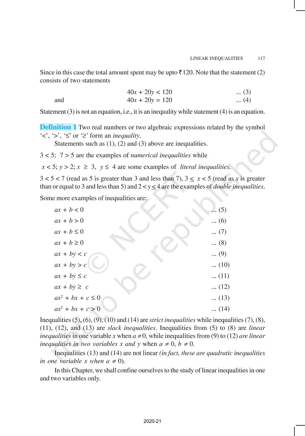 The time when students had limited options of choice for NCERT books wherein they need to go to the bookstore to buy the books but here at BeTrained.in, you can read the complete chapter-Linear Inequalities of NCERT books for class 11 Mathematics. If CBSE class 11 students are finding it hard to search for NCERT Mathematics books online, then this is the right place as we have provided the textbooks of NCERT chapter wise. These books are available on our website for free along with NCERT Solutions and Exemplar solutions.