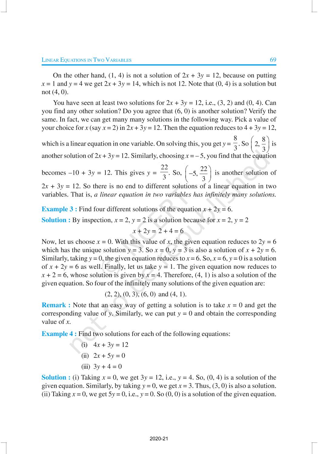 In earlier classes, you have studied linear equations in one variable.You know that Linear equations have a unique (i.e., one and only one) solution. You may also remember how to represent the solution on a number line. In this chapter, the knowledge of linear equations in one variable shall be recalled and extended to that of two variables. You will be considering questions like: Does a linear equation in two variables have a solution? If yes, is it unique? What does the solution look like on the Cartesian plane? You shall also use the concepts you studied in Chapter 3 to answer these questions.