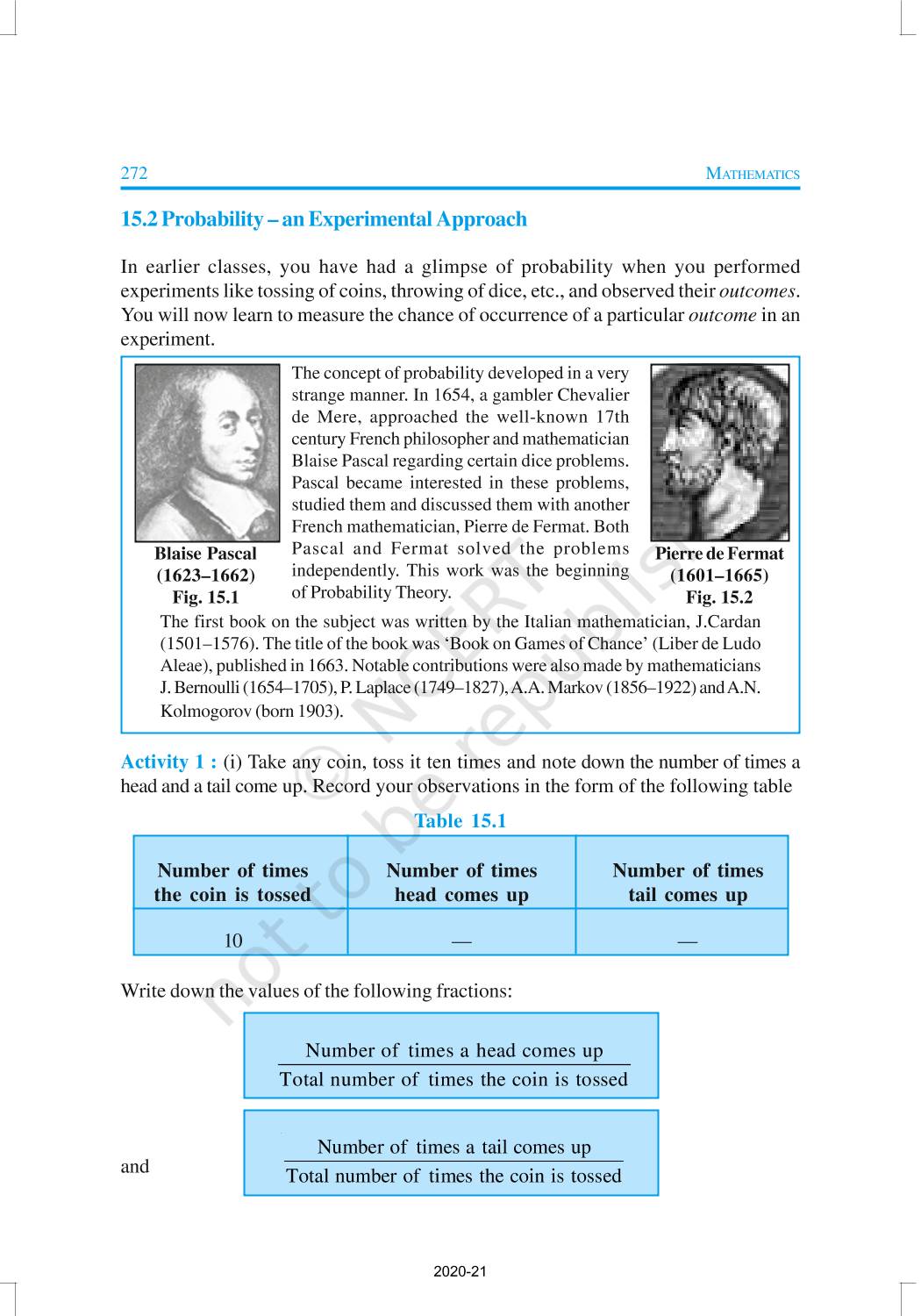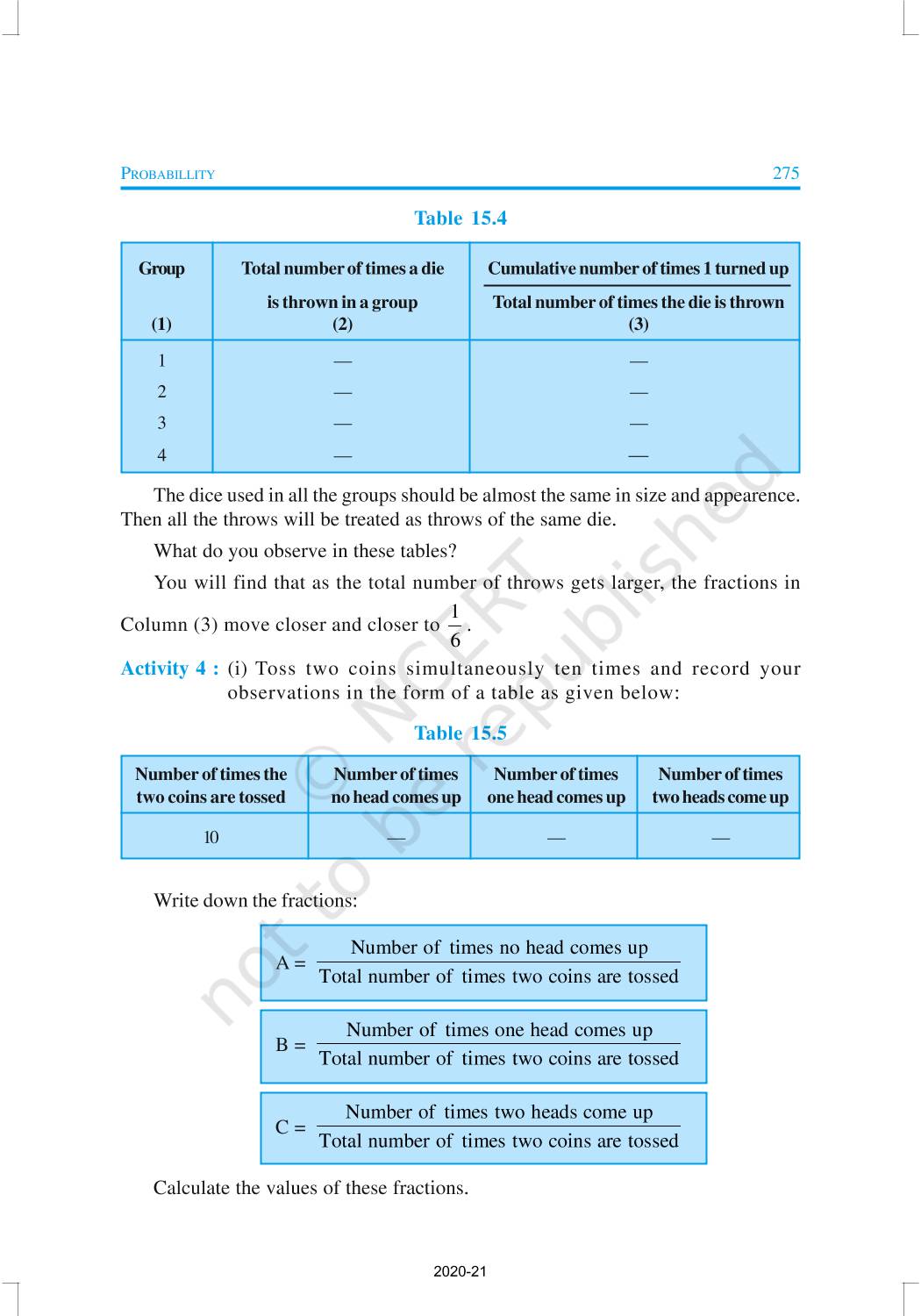 In earlier classes, you have had a glimpse of probability when you performed experiments like tossing of coins, throwing of dice, etc., and observed their outcomes. You will now learn to measure the chance of occurrence of a particular outcome in an experiment.