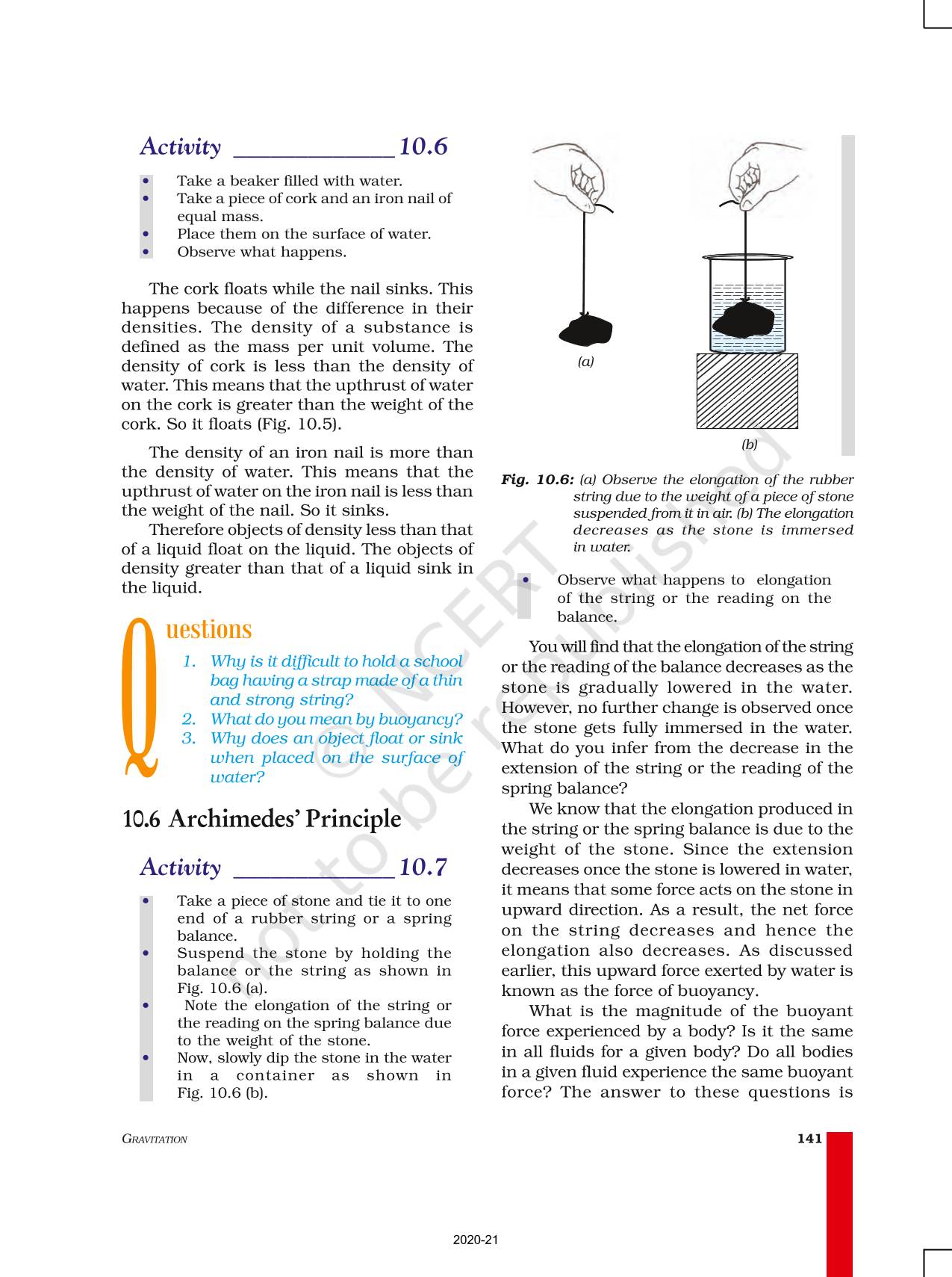 Objects having a density less than that of the liquid in which they are immersed, float on the surface of the liquid. If the density of the object is more than the density of the liquid in which it is immersed then it sinks in the liquid.