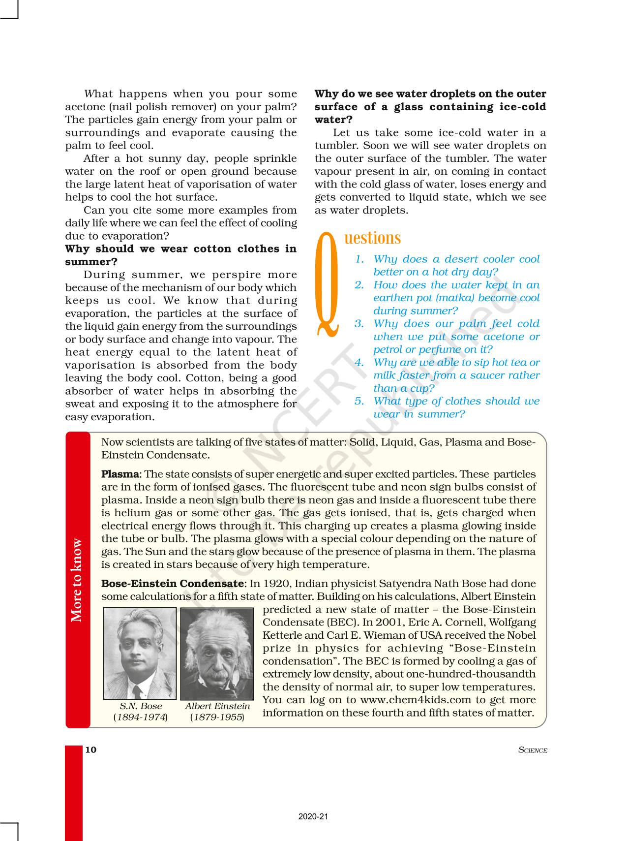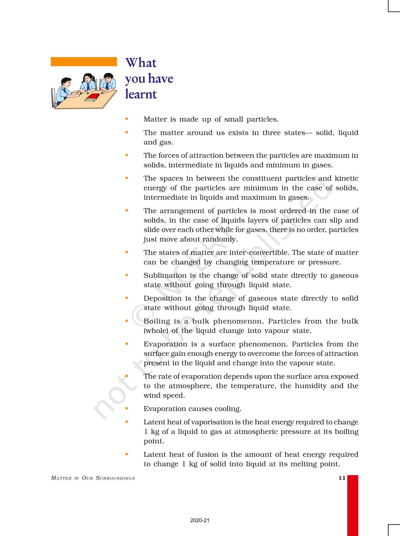 • The spaces in between the constituent particles and kinetic energy of the particles are minimum in the case of solids, intermediate in liquids and maximum in gases.