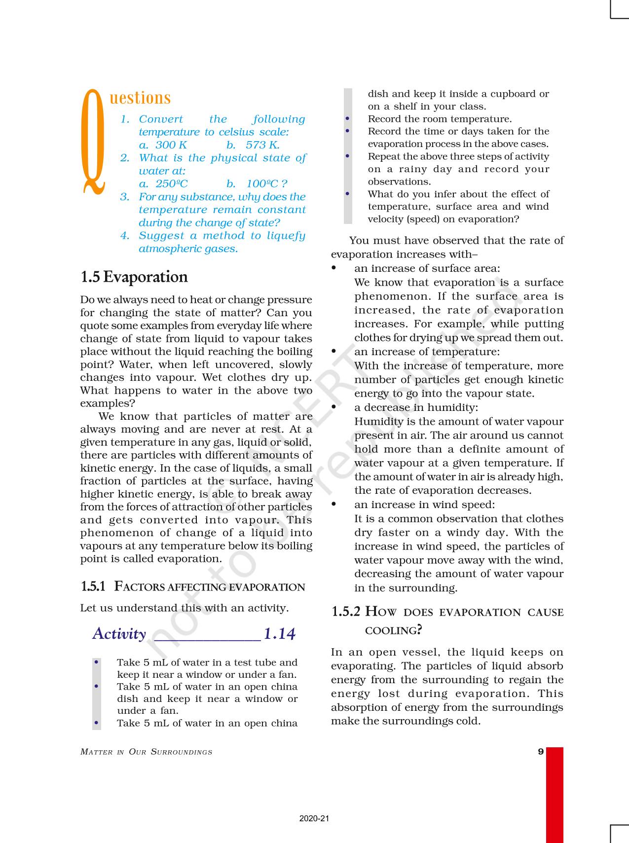 • The rate of evaporation depends upon the surface area exposed to the atmosphere, the temperature, humidity and the wind speed.