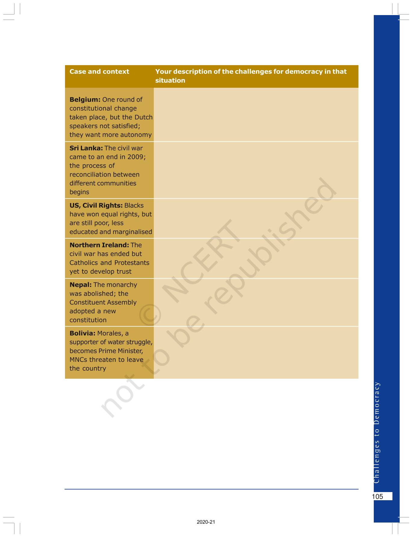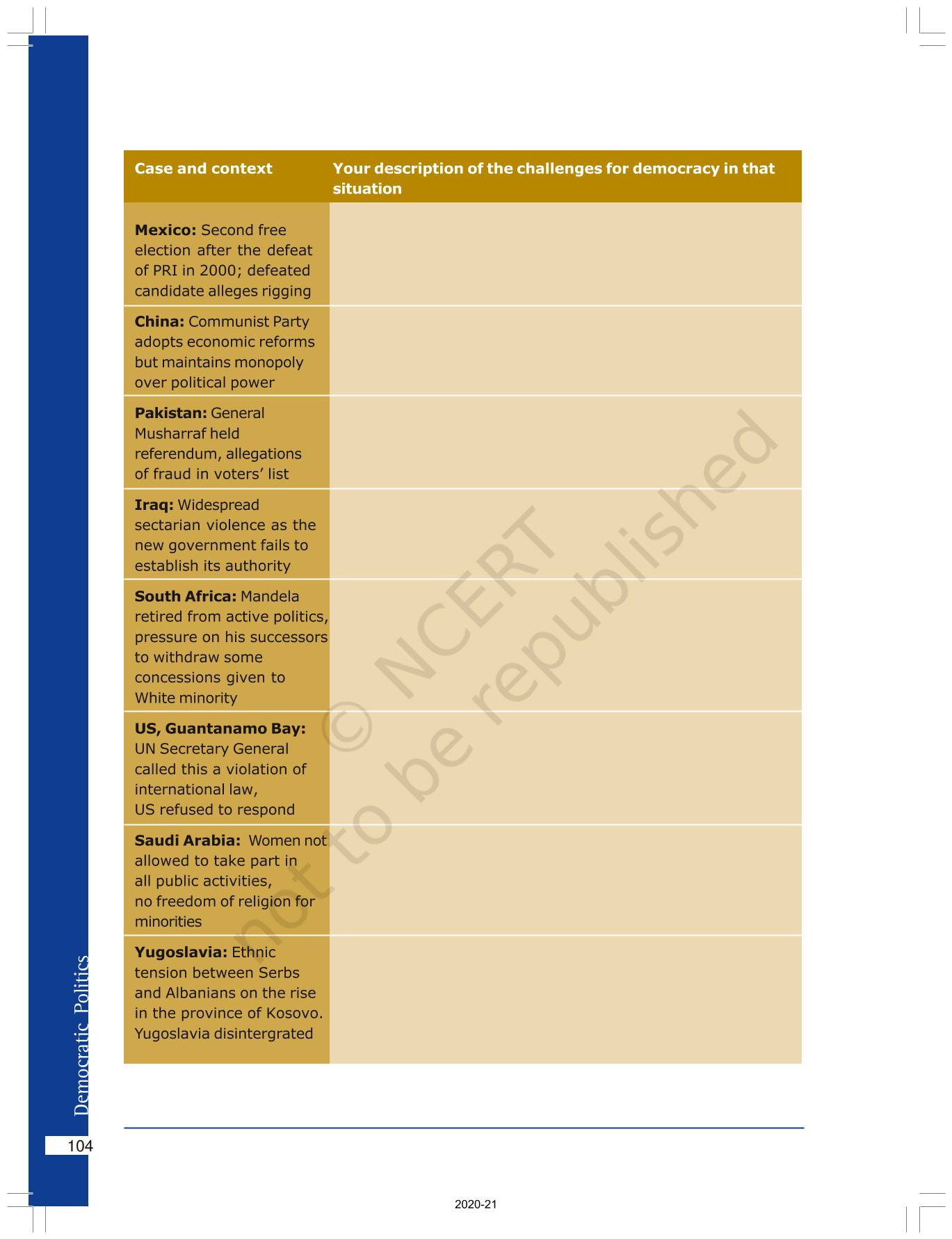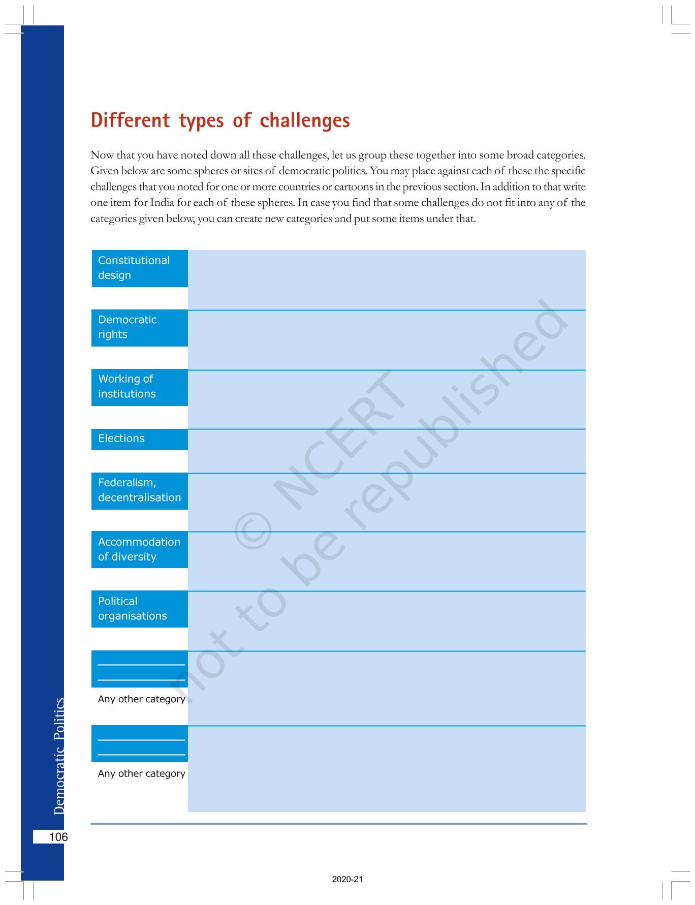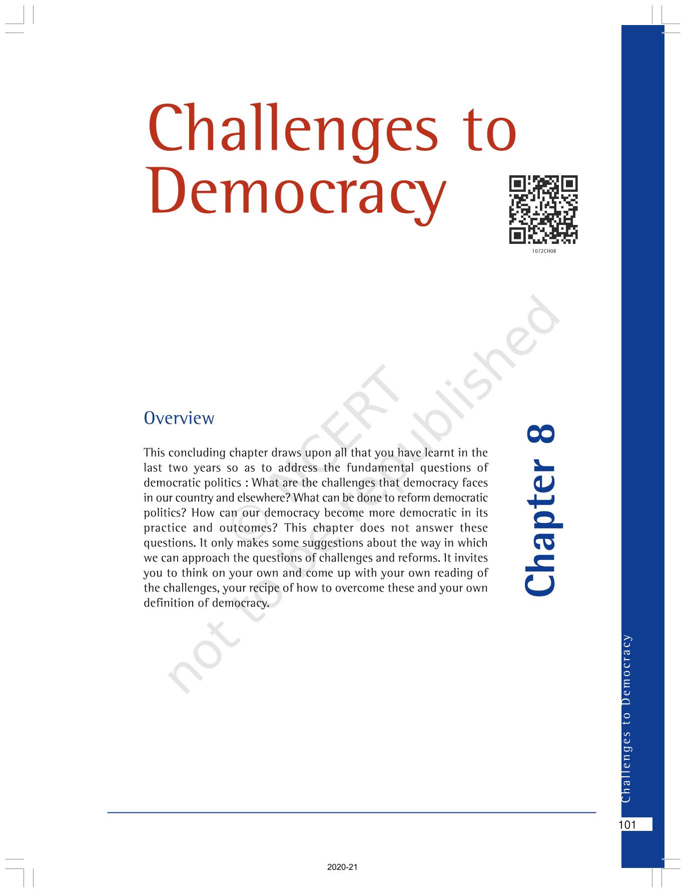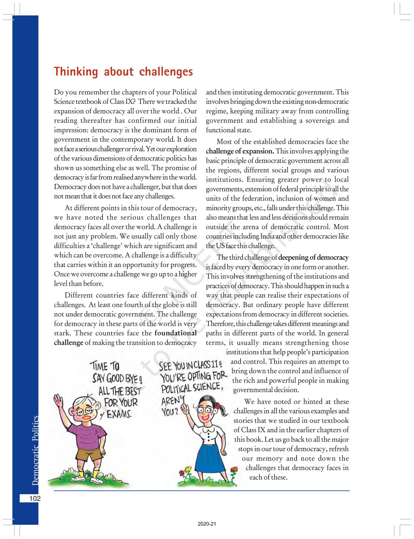 The time when students had limited options of choice for NCERT books wherein they need to go to the bookstore to buy the books but here at BeTrained.in, you can read the complete chapter-Challenges To Democracy of NCERT books for class 10 Democratic Politics II. If CBSE class 10 students are finding it hard to search for NCERT Democratic Politics II books online, then this is the right place as we have provided the textbooks of NCERT chapter wise. These books are available on our website for free along with NCERT Solutions and Exemplar solutions.