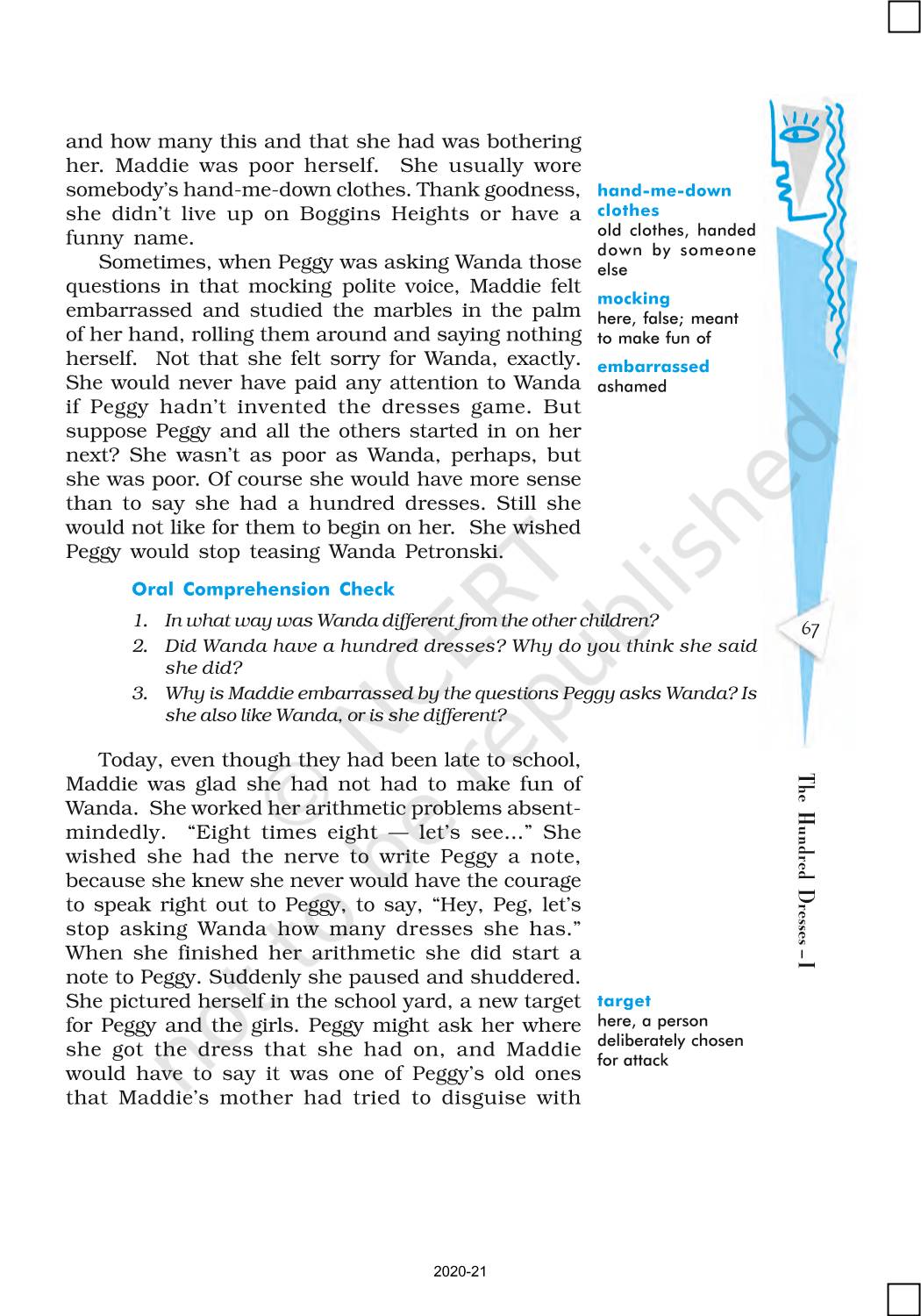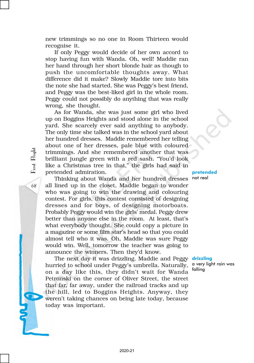 The time when students had limited options of choice for NCERT books wherein they need to go to the bookstore to buy the books but here at BeTrained.in, you can read the complete chapter-The Hundred Dresses I of NCERT books for class 10 First Flight. If CBSE class 10 students are finding it hard to search for NCERT First Flight books online, then this is the right place as we have provided the textbooks of NCERT chapter wise. These books are available on our website for free along with NCERT Solutions and Exemplar solutions.