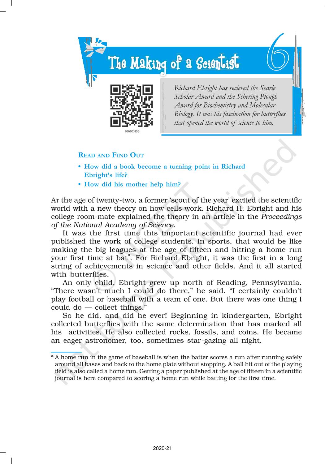 The time when students had limited options of choice for NCERT books wherein they need to go to the bookstore to buy the books but here at BeTrained.in, you can read the complete chapter-The Making Of A Scientist of NCERT books for class 10 Footprints Without Feet. If CBSE class 10 students are finding it hard to search for NCERT Footprints Without Feet books online, then this is the right place as we have provided the textbooks of NCERT chapter wise. These books are available on our website for free along with NCERT Solutions and Exemplar solutions.