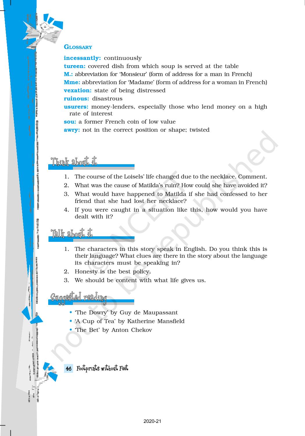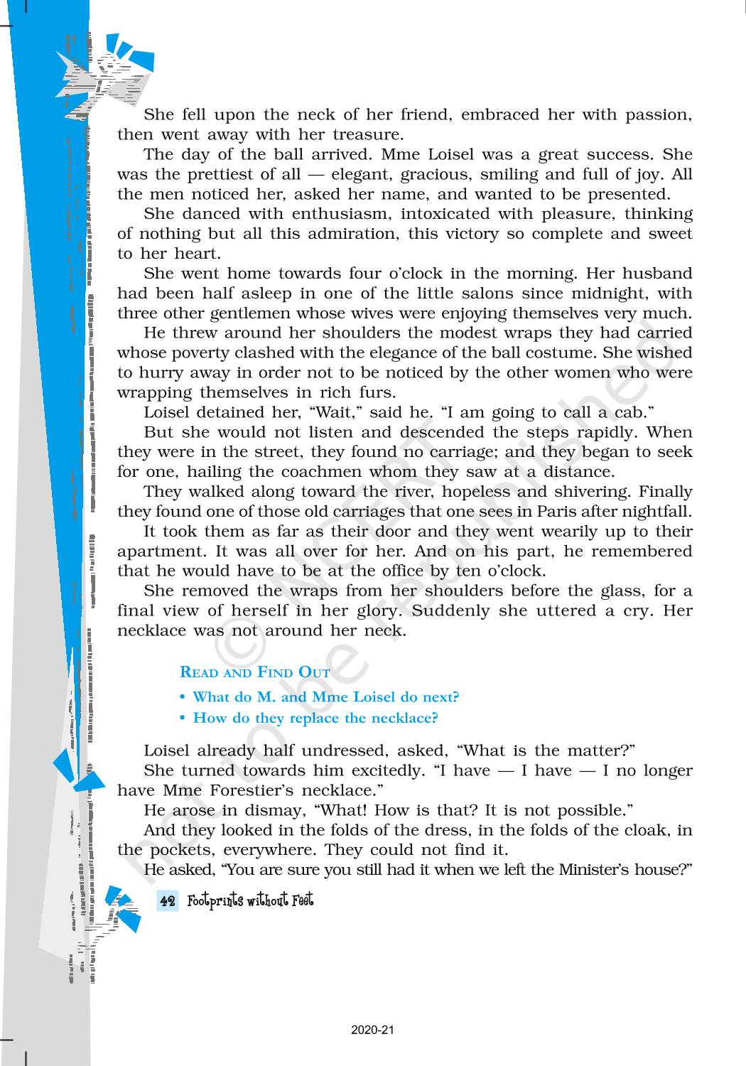The time when students had limited options of choice for NCERT books wherein they need to go to the bookstore to buy the books but here at BeTrained.in, you can read the complete chapter-The Necklace of NCERT books for class 10 Footprints Without Feet. If CBSE class 10 students are finding it hard to search for NCERT Footprints Without Feet books online, then this is the right place as we have provided the textbooks of NCERT chapter wise. These books are available on our website for free along with NCERT Solutions and Exemplar solutions.