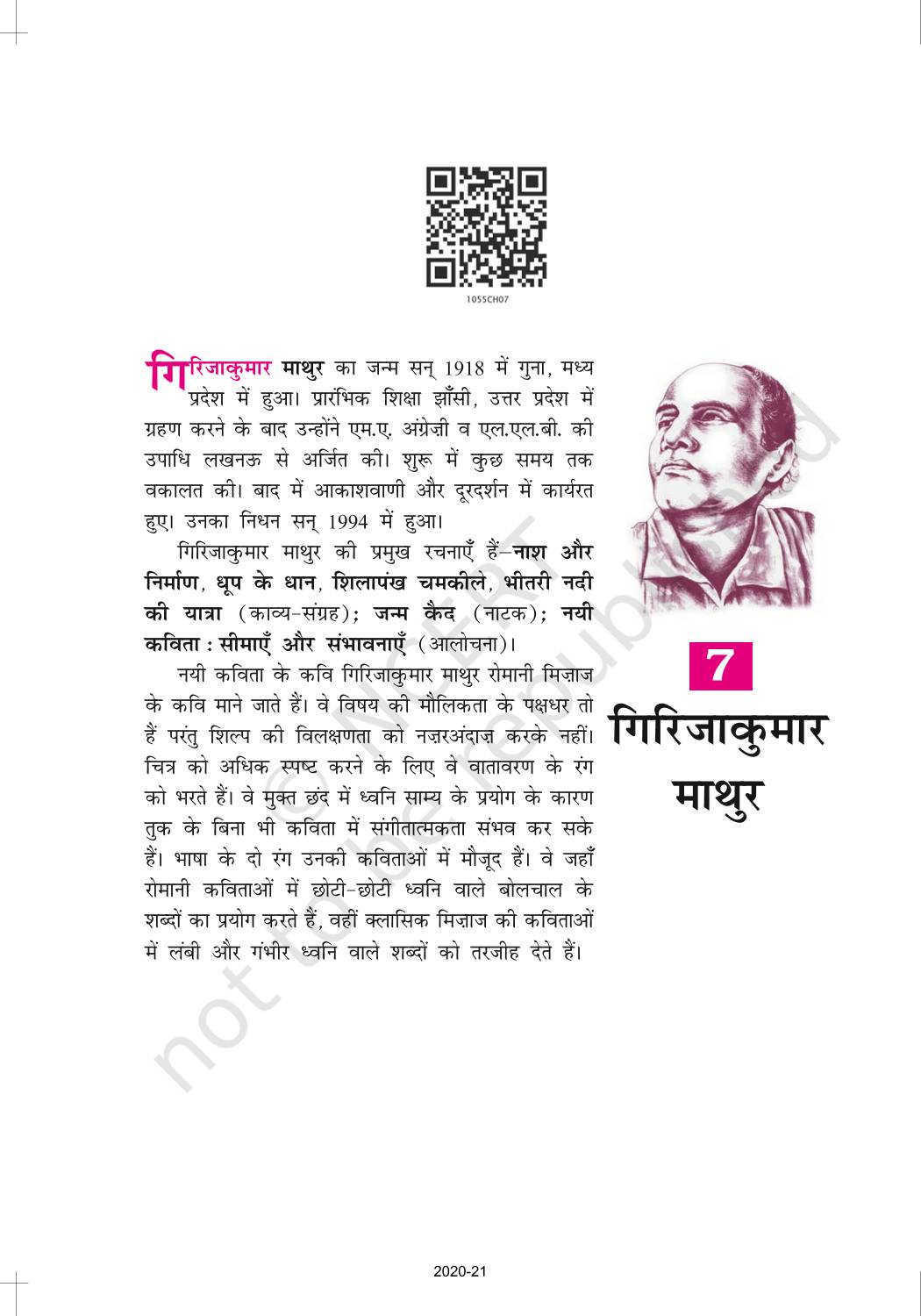 The time when students had limited options of choice for NCERT books wherein they need to go to the bookstore to buy the books but here at BeTrained.in, you can read the complete chapter-Girija Kumar Mathur of NCERT books for class 10 Hindi Kshitij Part 2. If CBSE class 10 students are finding it hard to search for NCERT Hindi Kshitij Part 2 books online, then this is the right place as we have provided the textbooks of NCERT chapter wise. These books are available on our website for free along with NCERT Solutions and Exemplar solutions.