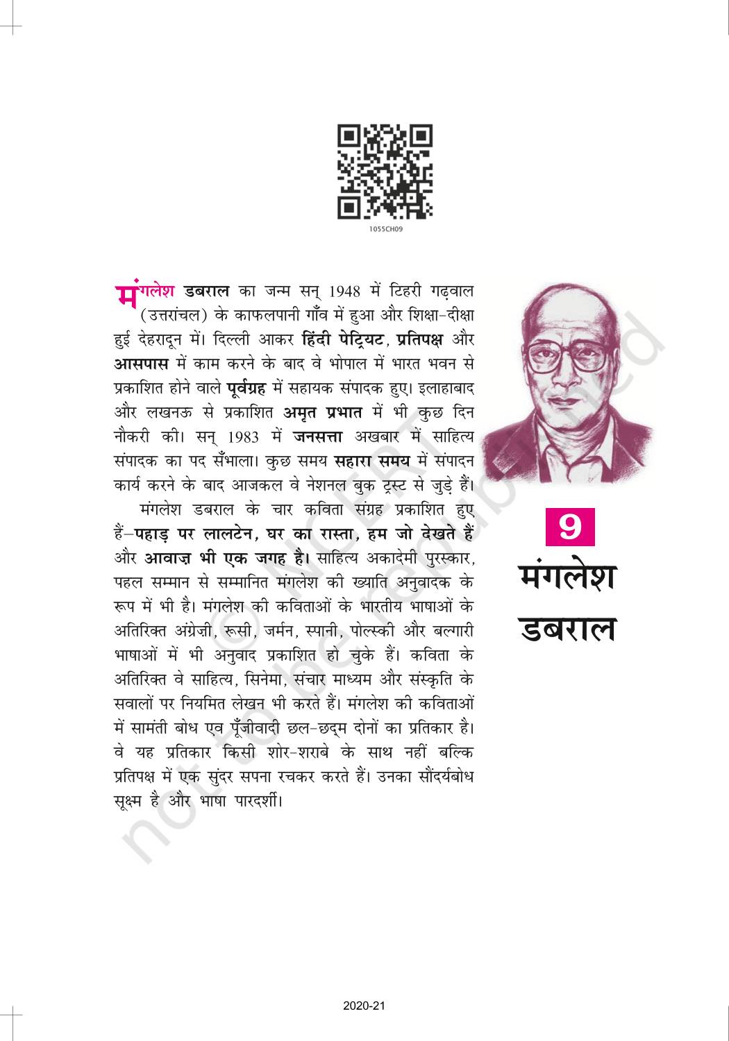 The time when students had limited options of choice for NCERT books wherein they need to go to the bookstore to buy the books but here at BeTrained.in, you can read the complete chapter-Manglesh Dabral of NCERT books for class 10 Hindi Kshitij Part 2. If CBSE class 10 students are finding it hard to search for NCERT Hindi Kshitij Part 2 books online, then this is the right place as we have provided the textbooks of NCERT chapter wise. These books are available on our website for free along with NCERT Solutions and Exemplar solutions.