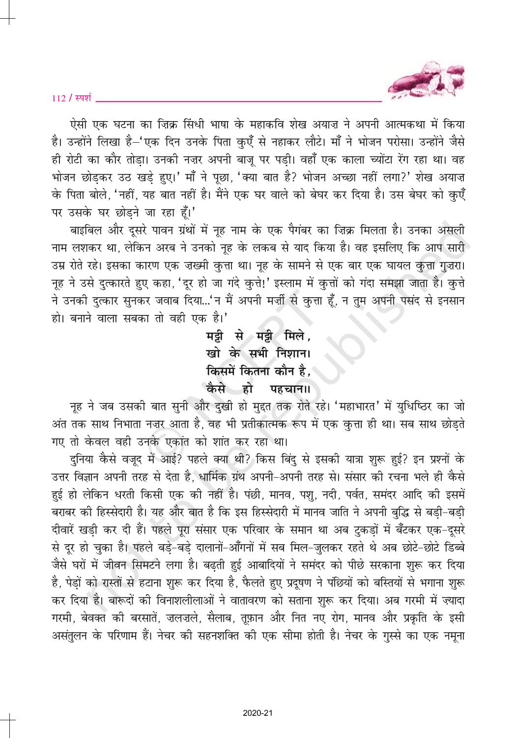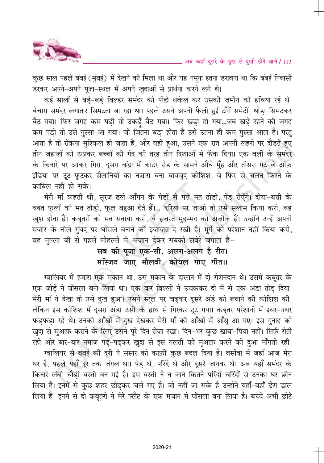 The time when students had limited options of choice for NCERT books wherein they need to go to the bookstore to buy the books but here at BeTrained.in, you can read the complete chapter-Nida Phazali Ab Kahan Doosron Ke Dukh Se Dukhi Hone Wale of NCERT books for class 10 Hindi Sparsh Part 2. If CBSE class 10 students are finding it hard to search for NCERT Hindi Sparsh Part 2 books online, then this is the right place as we have provided the textbooks of NCERT chapter wise. These books are available on our website for free along with NCERT Solutions and Exemplar solutions.