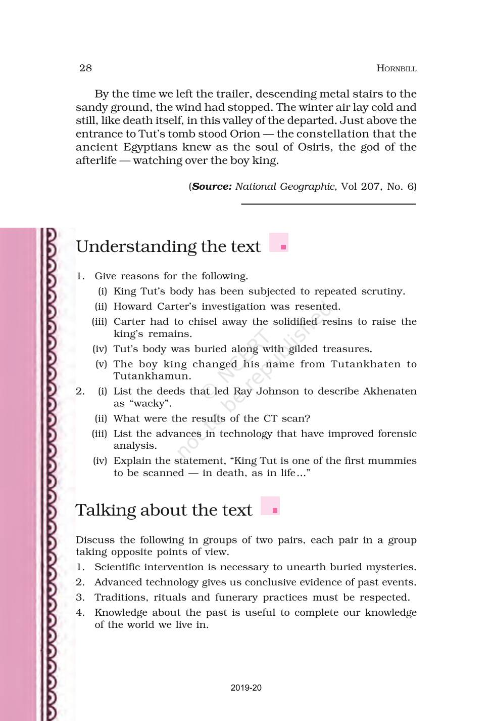 The time when students had limited options of choice for NCERT books wherein they need to go to the bookstore to buy the books but here at BeTrained.in, you can read the complete chapter-Discovering Tut The Saga Continues of NCERT books for class 11 English Hornbill. If CBSE class 11 students are finding it hard to search for NCERT English Hornbill books online, then this is the right place as we have provided the textbooks of NCERT chapter wise. These books are available on our website for free along with NCERT Solutions and Exemplar solutions.