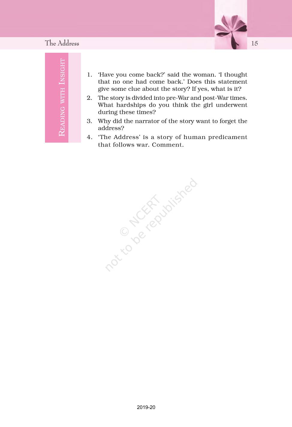 The time when students had limited options of choice for NCERT books wherein they need to go to the bookstore to buy the books but here at BeTrained.in, you can read the complete chapter-The Address of NCERT books for class 11 English Snapshot. If CBSE class 11 students are finding it hard to search for NCERT English Snapshot books online, then this is the right place as we have provided the textbooks of NCERT chapter wise. These books are available on our website for free along with NCERT Solutions and Exemplar solutions.