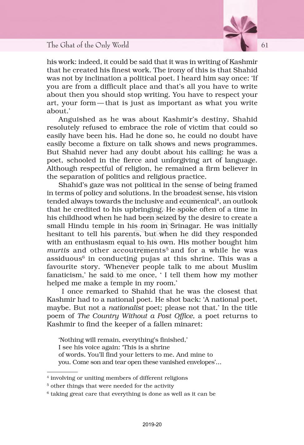 The time when students had limited options of choice for NCERT books wherein they need to go to the bookstore to buy the books but here at BeTrained.in, you can read the complete chapter-The Ghat Of The Only World of NCERT books for class 11 English Snapshot. If CBSE class 11 students are finding it hard to search for NCERT English Snapshot books online, then this is the right place as we have provided the textbooks of NCERT chapter wise. These books are available on our website for free along with NCERT Solutions and Exemplar solutions.
