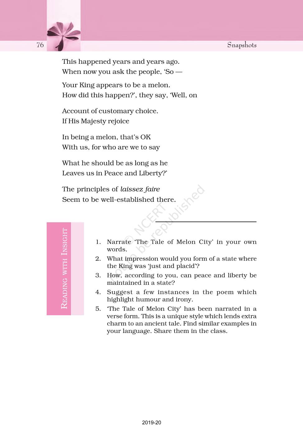 The time when students had limited options of choice for NCERT books wherein they need to go to the bookstore to buy the books but here at BeTrained.in, you can read the complete chapter-The Tale Of Melon City of NCERT books for class 11 English Snapshot. If CBSE class 11 students are finding it hard to search for NCERT English Snapshot books online, then this is the right place as we have provided the textbooks of NCERT chapter wise. These books are available on our website for free along with NCERT Solutions and Exemplar solutions.