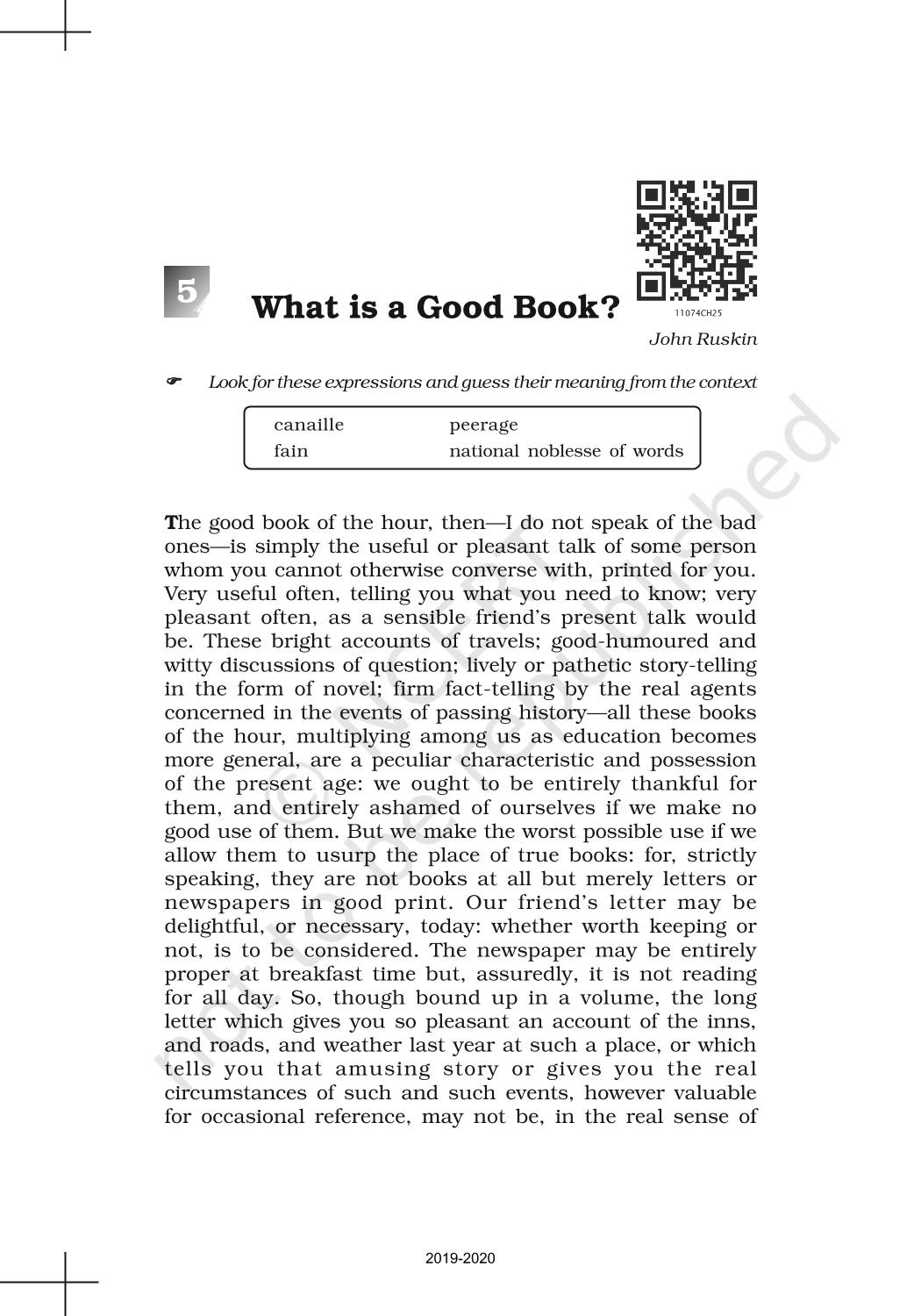 The time when students had limited options of choice for NCERT books wherein they need to go to the bookstore to buy the books but here at BeTrained.in, you can read the complete chapter-Essays 5 What Is A Good Book of NCERT books for class 11 English Woven Words. If CBSE class 11 students are finding it hard to search for NCERT English Woven Words books online, then this is the right place as we have provided the textbooks of NCERT chapter wise. These books are available on our website for free along with NCERT Solutions and Exemplar solutions.