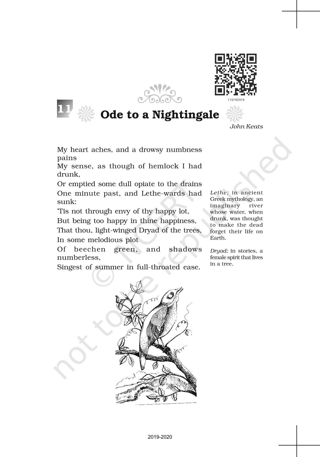 The time when students had limited options of choice for NCERT books wherein they need to go to the bookstore to buy the books but here at BeTrained.in, you can read the complete chapter-Poetry 11 Ode To A Nightingale of NCERT books for class 11 English Woven Words. If CBSE class 11 students are finding it hard to search for NCERT English Woven Words books online, then this is the right place as we have provided the textbooks of NCERT chapter wise. These books are available on our website for free along with NCERT Solutions and Exemplar solutions.