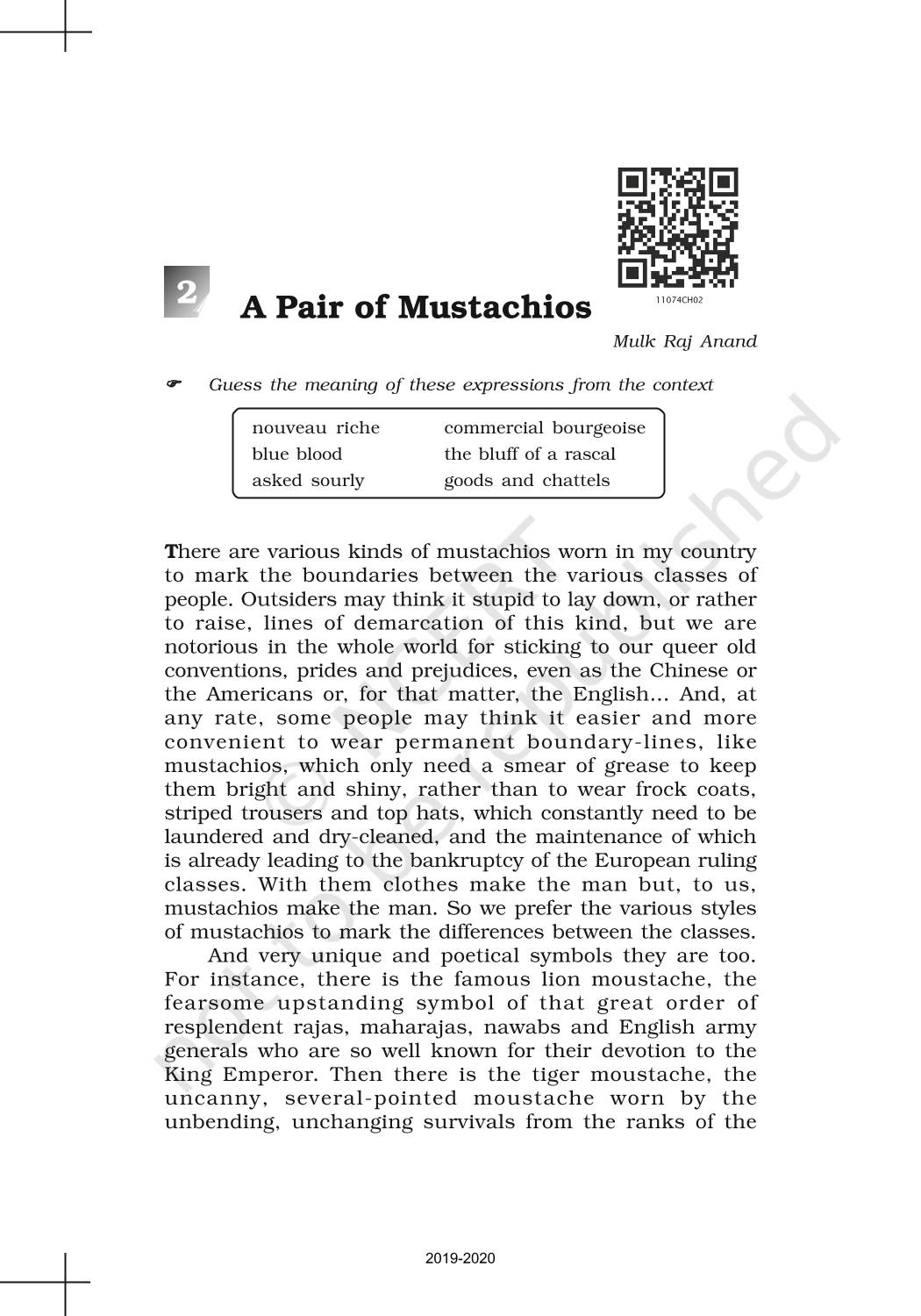 The time when students had limited options of choice for NCERT books wherein they need to go to the bookstore to buy the books but here at BeTrained.in, you can read the complete chapter-Short Stories 2 A Pair Of Mustachios of NCERT books for class 11 English Woven Words. If CBSE class 11 students are finding it hard to search for NCERT English Woven Words books online, then this is the right place as we have provided the textbooks of NCERT chapter wise. These books are available on our website for free along with NCERT Solutions and Exemplar solutions.