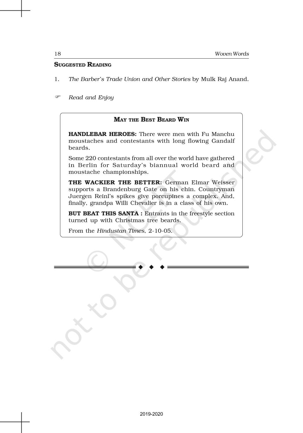 BeTrained.in has brought the NCERT books for class 11 English Woven Words where you can find every topic explained in a detailed way. These books are recommended by CBSE and some other state boards. Most of the teachers also use these books for teaching in schools. It is also used as a reference to prepare the questions for mid-term and final exams. The topics are explained in a very easy language along with examples and diagrams. Also, ideal for comprehensive and thorough learning to develop a clear concept. The chapters in the books have illustrative examples and practice problems for getting a hold of any kind of concept.