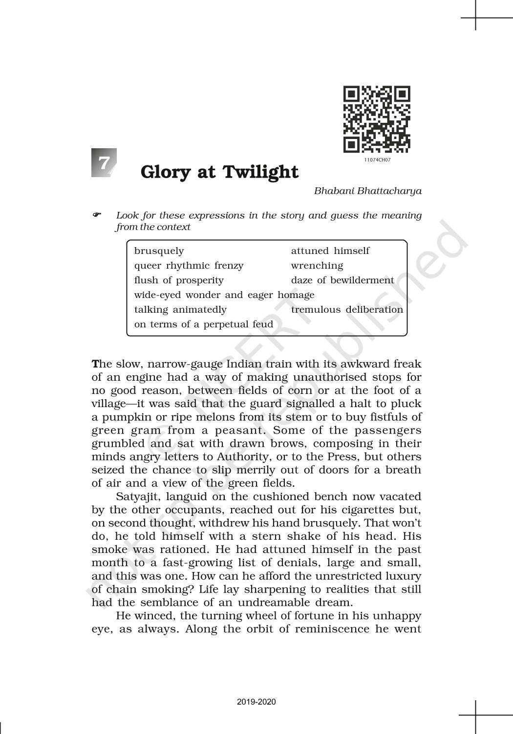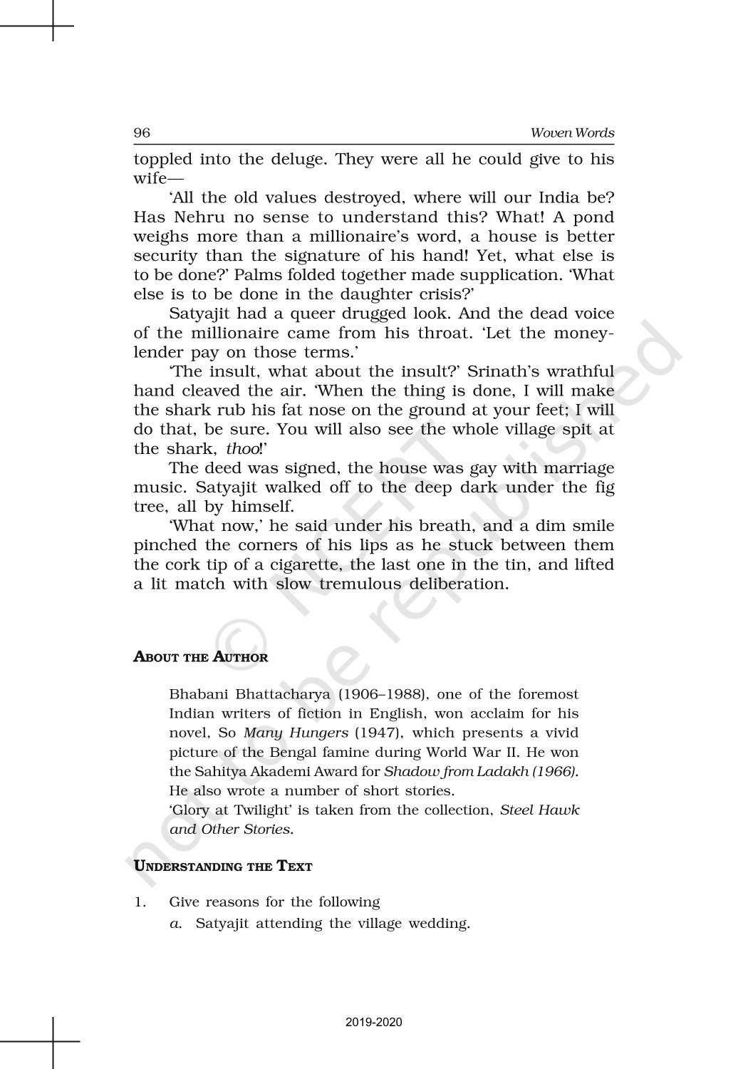 The time when students had limited options of choice for NCERT books wherein they need to go to the bookstore to buy the books but here at BeTrained.in, you can read the complete chapter-Short Stories 7 Glory At Twilight of NCERT books for class 11 English Woven Words. If CBSE class 11 students are finding it hard to search for NCERT English Woven Words books online, then this is the right place as we have provided the textbooks of NCERT chapter wise. These books are available on our website for free along with NCERT Solutions and Exemplar solutions.