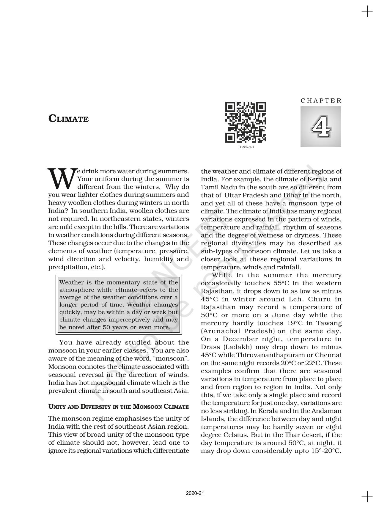 The time when students had limited options of choice for NCERT books wherein they need to go to the bookstore to buy the books but here at BeTrained.in, you can read the complete chapter-Climate of NCERT books for class 11 India Physical Environment. If CBSE class 11 students are finding it hard to search for NCERT India Physical Environment books online, then this is the right place as we have provided the textbooks of NCERT chapter wise. These books are available on our website for free along with NCERT Solutions and Exemplar solutions.