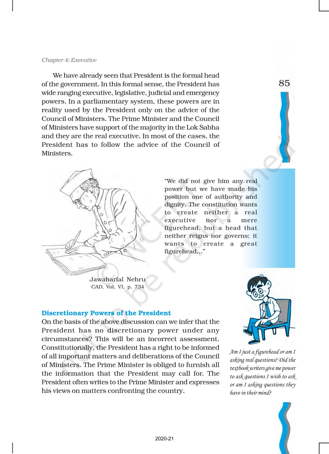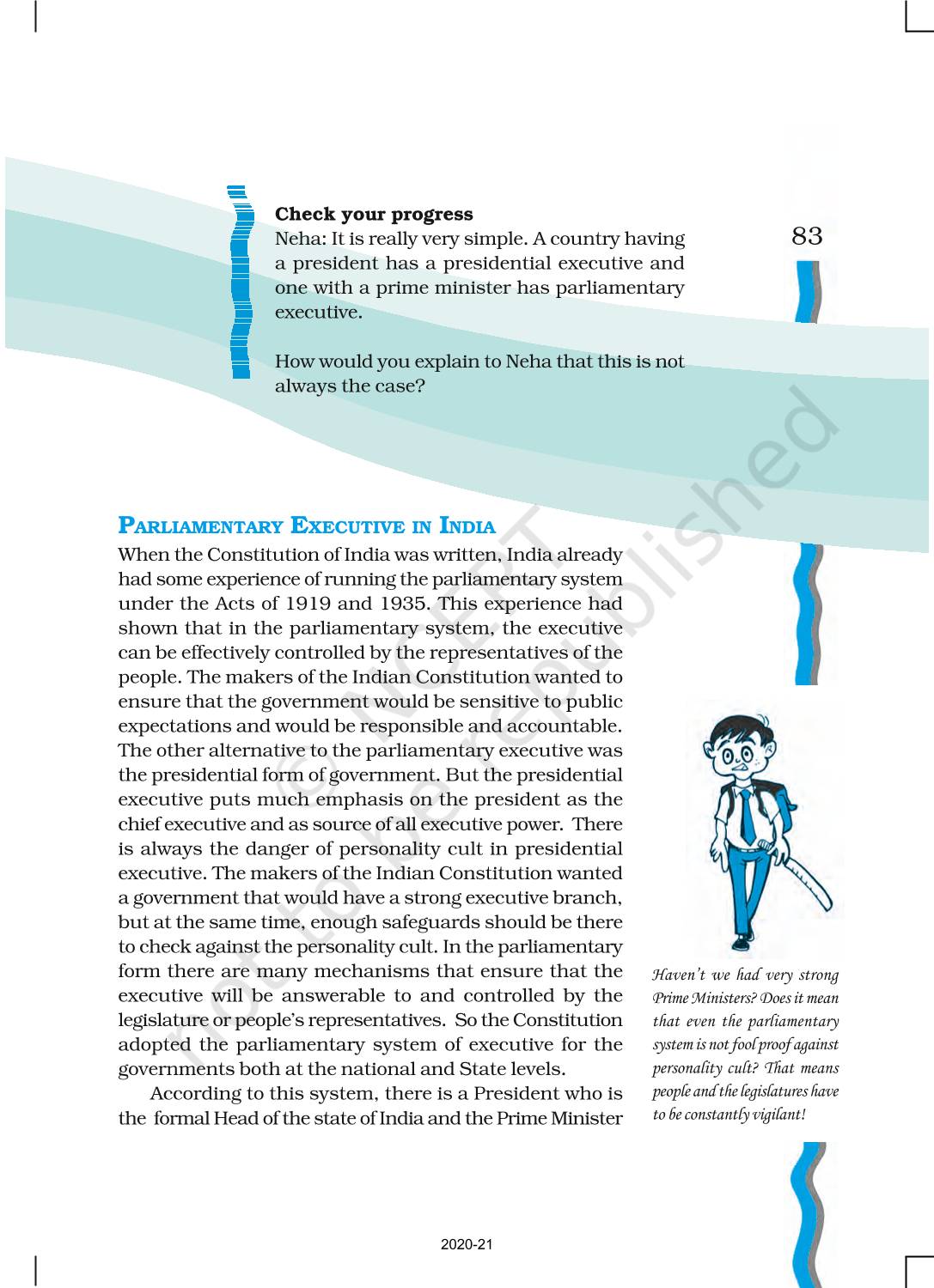 The time when students had limited options of choice for NCERT books wherein they need to go to the bookstore to buy the books but here at BeTrained.in, you can read the complete chapter-Executive of NCERT books for class 11 Indian Constitution At Work. If CBSE class 11 students are finding it hard to search for NCERT Indian Constitution At Work books online, then this is the right place as we have provided the textbooks of NCERT chapter wise. These books are available on our website for free along with NCERT Solutions and Exemplar solutions.