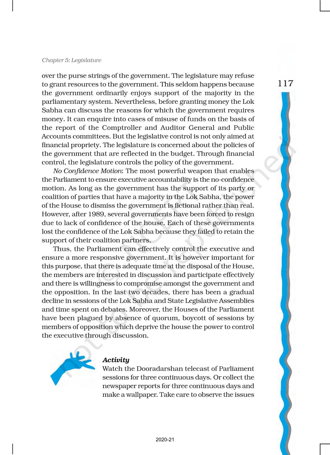 The time when students had limited options of choice for NCERT books wherein they need to go to the bookstore to buy the books but here at BeTrained.in, you can read the complete chapter-Legislature of NCERT books for class 11 Indian Constitution At Work. If CBSE class 11 students are finding it hard to search for NCERT Indian Constitution At Work books online, then this is the right place as we have provided the textbooks of NCERT chapter wise. These books are available on our website for free along with NCERT Solutions and Exemplar solutions.