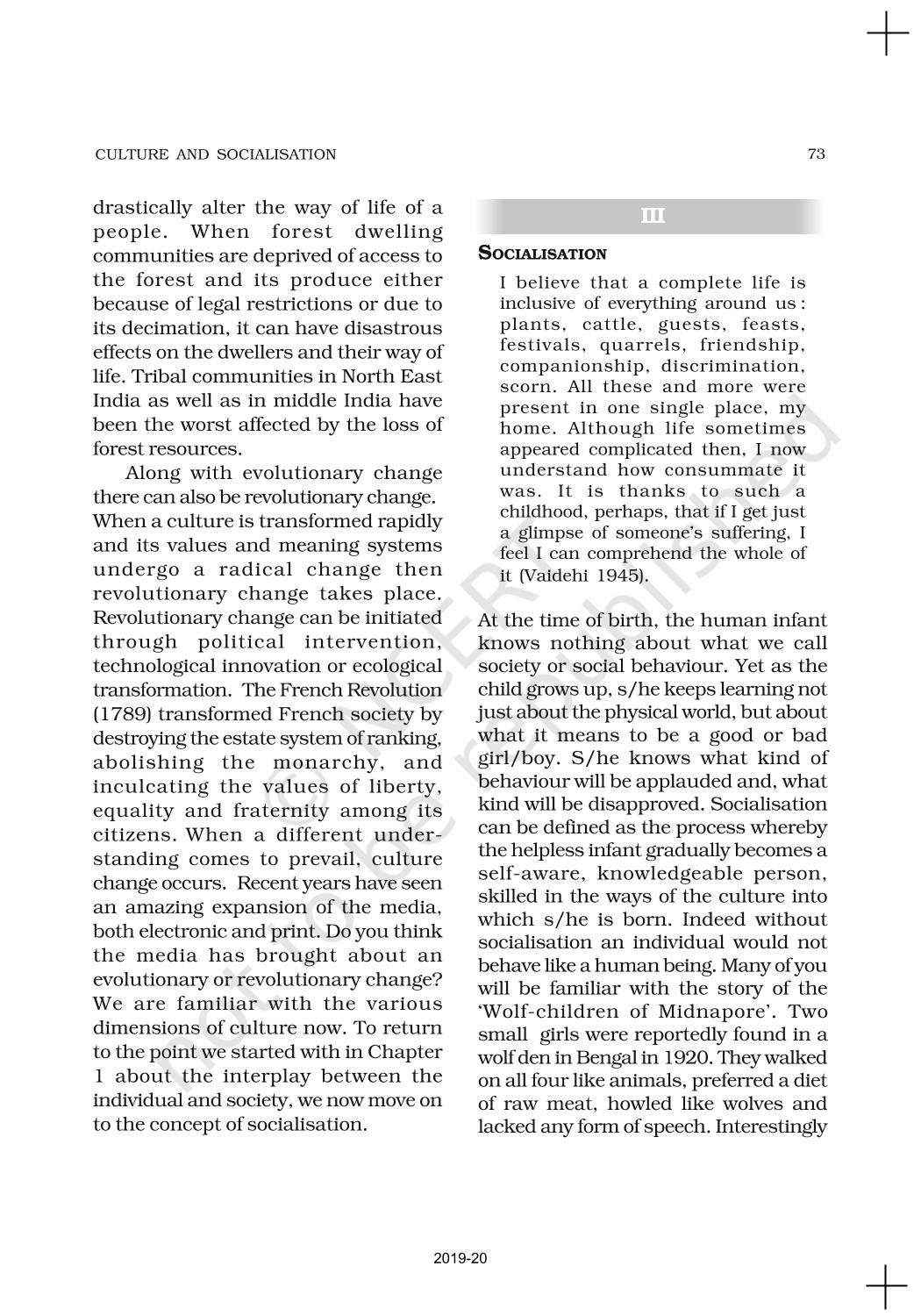 The time when students had limited options of choice for NCERT books wherein they need to go to the bookstore to buy the books but here at BeTrained.in, you can read the complete chapter-Culture And Socialisation of NCERT books for class 11 Sociology. If CBSE class 11 students are finding it hard to search for NCERT Sociology books online, then this is the right place as we have provided the textbooks of NCERT chapter wise. These books are available on our website for free along with NCERT Solutions and Exemplar solutions.