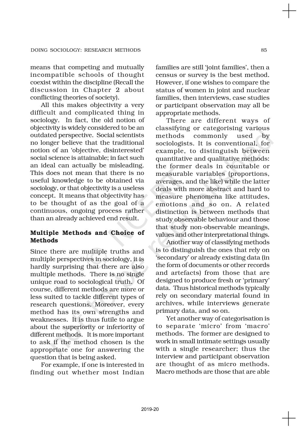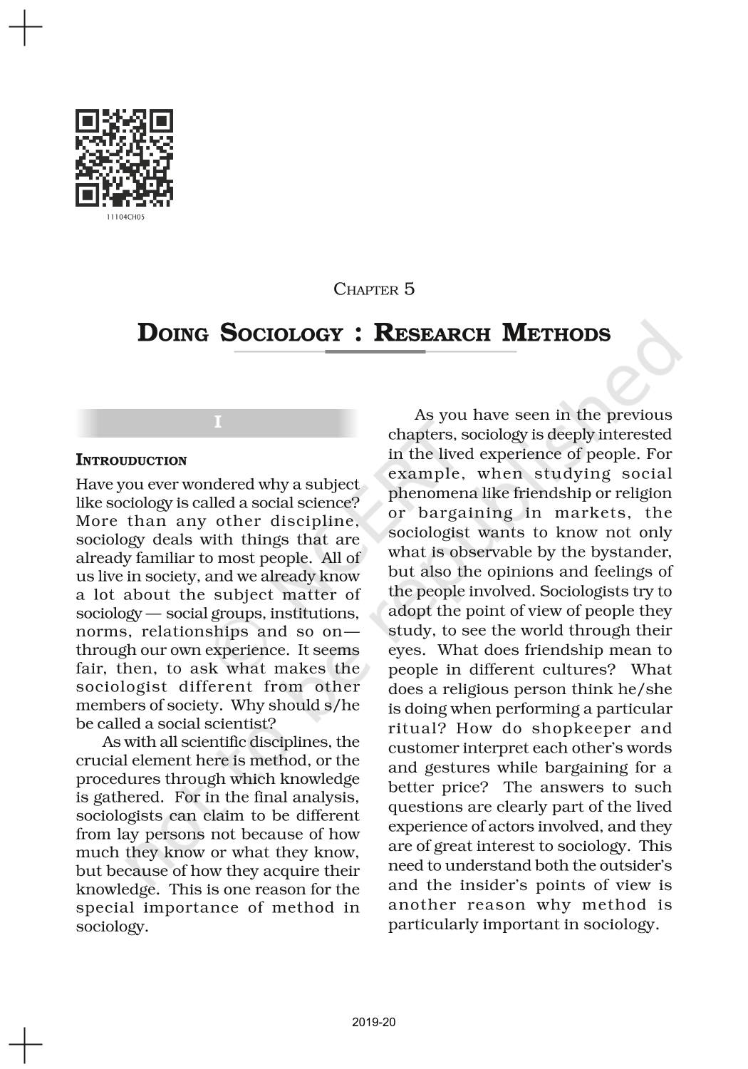 The time when students had limited options of choice for NCERT books wherein they need to go to the bookstore to buy the books but here at BeTrained.in, you can read the complete chapter-Doing Sociology Research Methods of NCERT books for class 11 Sociology. If CBSE class 11 students are finding it hard to search for NCERT Sociology books online, then this is the right place as we have provided the textbooks of NCERT chapter wise. These books are available on our website for free along with NCERT Solutions and Exemplar solutions.