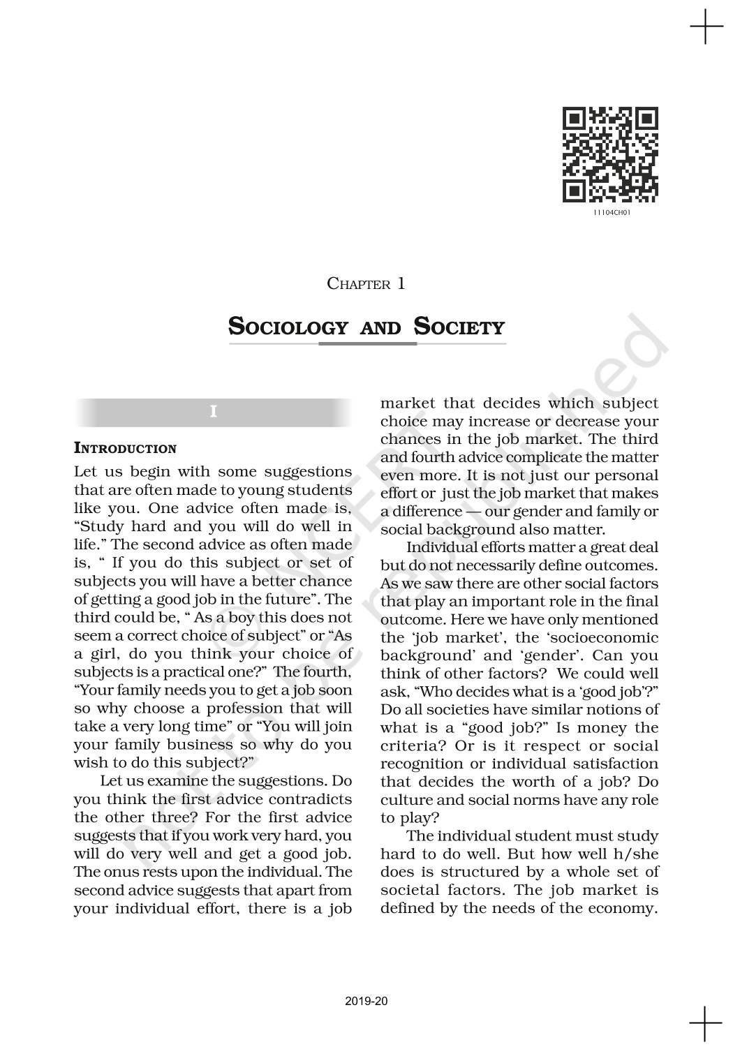 The time when students had limited options of choice for NCERT books wherein they need to go to the bookstore to buy the books but here at BeTrained.in, you can read the complete chapter-Sociology And Society of NCERT books for class 11 Sociology. If CBSE class 11 students are finding it hard to search for NCERT Sociology books online, then this is the right place as we have provided the textbooks of NCERT chapter wise. These books are available on our website for free along with NCERT Solutions and Exemplar solutions.