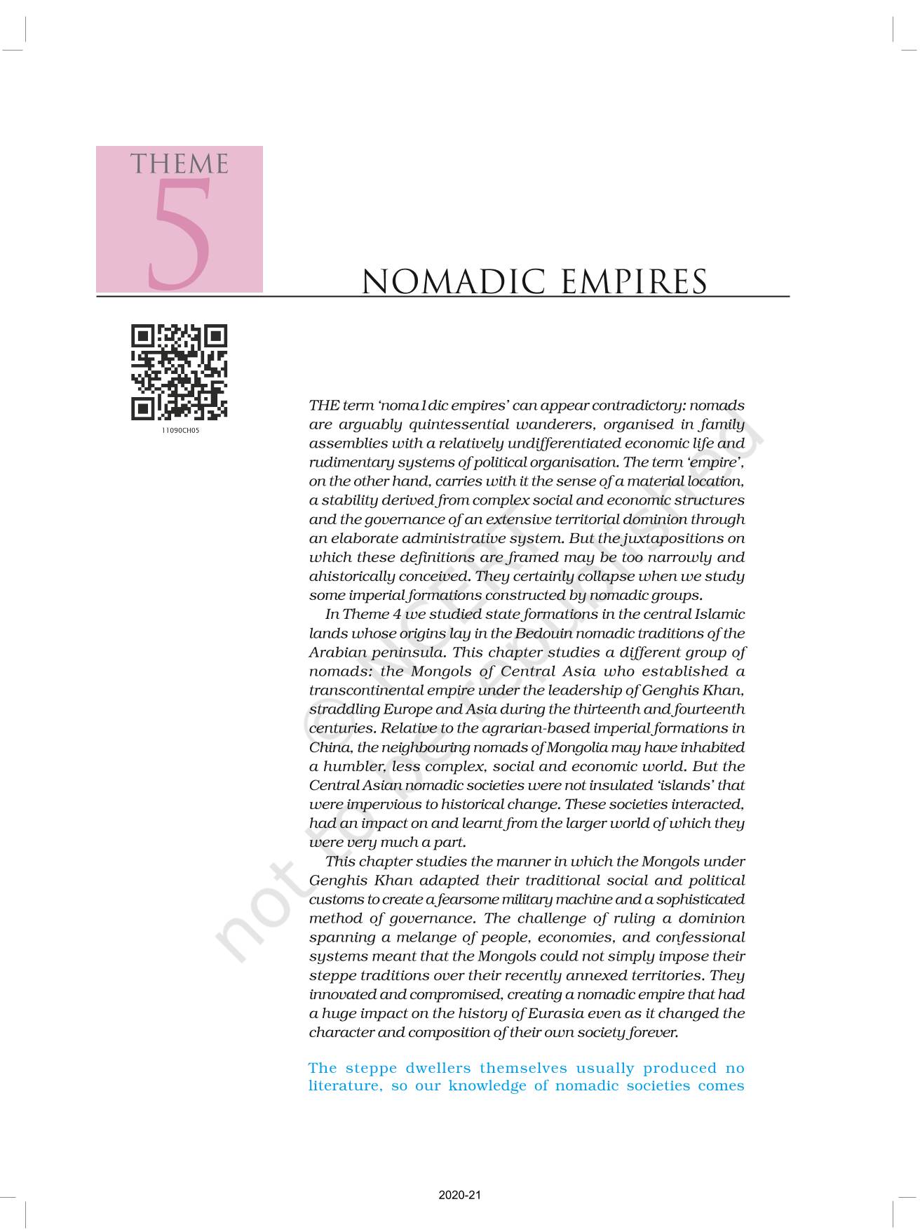 The time when students had limited options of choice for NCERT books wherein they need to go to the bookstore to buy the books but here at BeTrained.in, you can read the complete chapter-Nomadic Empires of NCERT books for class 11 Themes In World History. If CBSE class 11 students are finding it hard to search for NCERT Themes In World History books online, then this is the right place as we have provided the textbooks of NCERT chapter wise. These books are available on our website for free along with NCERT Solutions and Exemplar solutions.