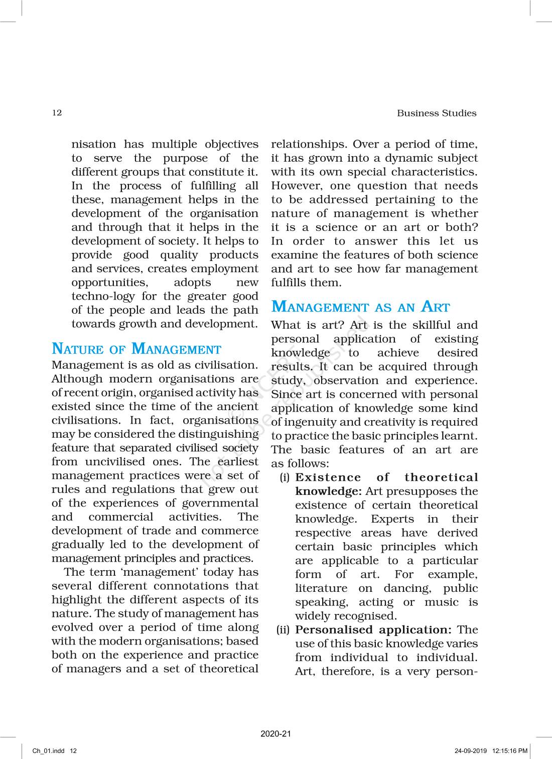 The time when students had limited options of choice for NCERT books wherein they need to go to the bookstore to buy the books but here at BeTrained.in, you can read the complete chapter-Nature And Significance Of Management of NCERT books for class 12 Business Studies Part I. If CBSE class 12 students are finding it hard to search for NCERT Business Studies Part I books online, then this is the right place as we have provided the textbooks of NCERT chapter wise. These books are available on our website for free along with NCERT Solutions and Exemplar solutions.
