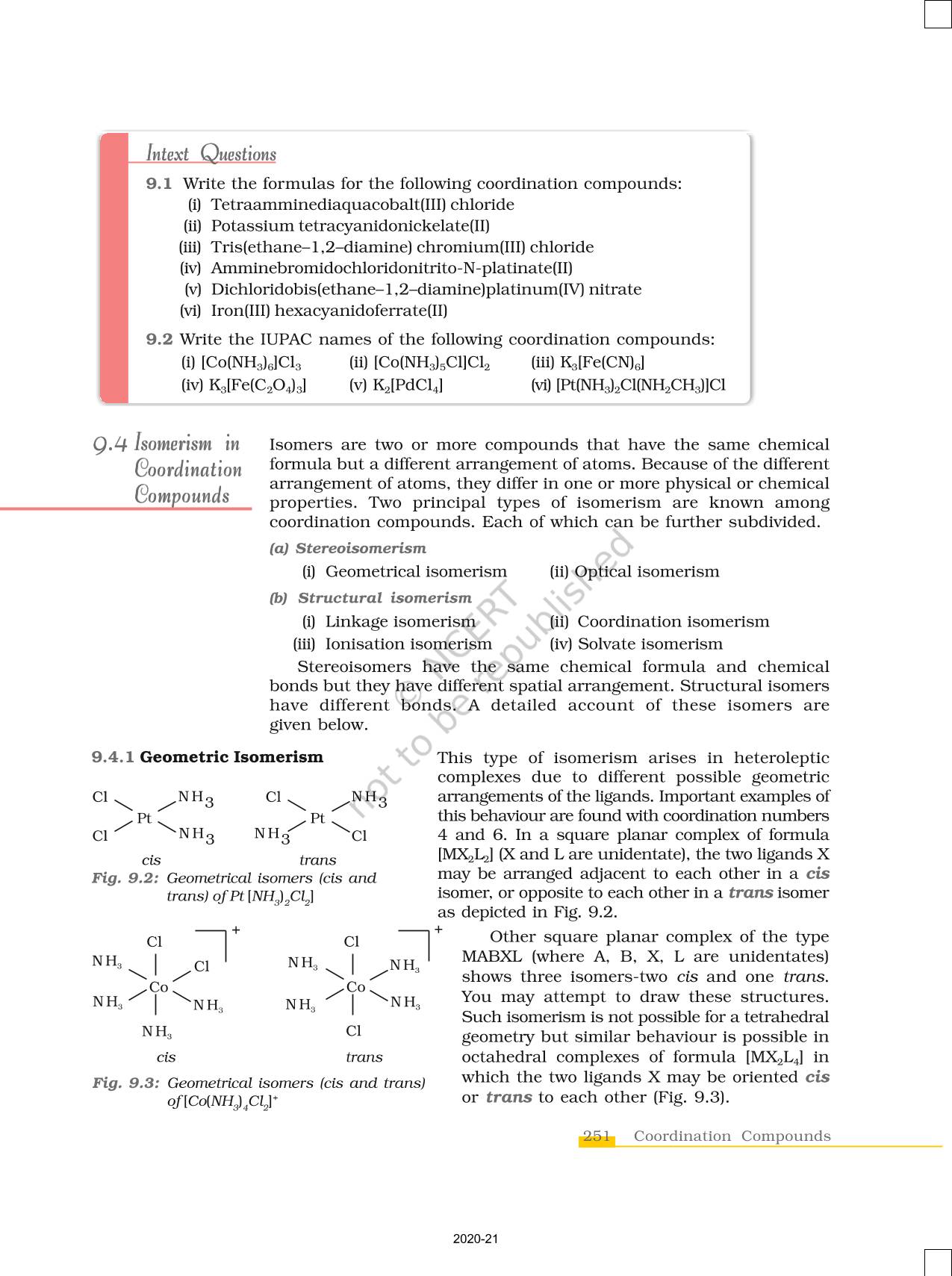 The time when students had limited options of choice for NCERT books wherein they need to go to the bookstore to buy the books but here at BeTrained.in, you can read the complete chapter-Coordination Compounds of NCERT books for class 12 Chemistry Part I. If CBSE class 12 students are finding it hard to search for NCERT Chemistry Part I books online, then this is the right place as we have provided the textbooks of NCERT chapter wise. These books are available on our website for free along with NCERT Solutions and Exemplar solutions.