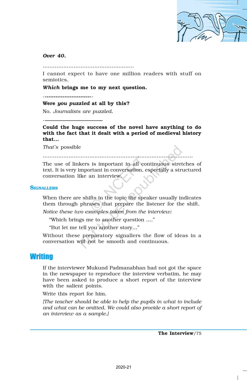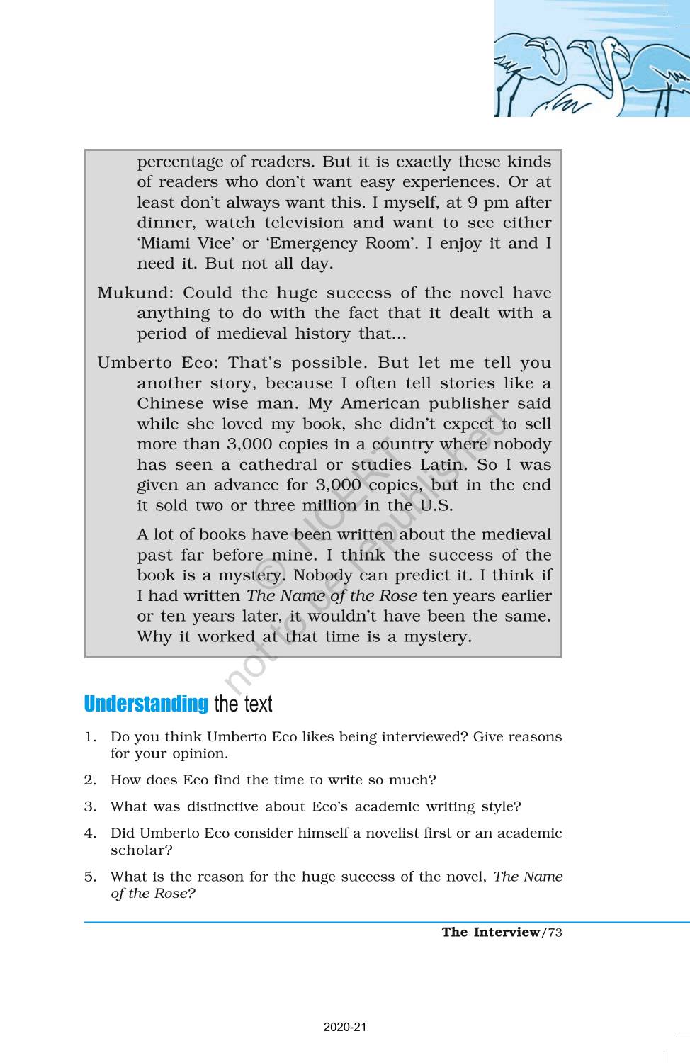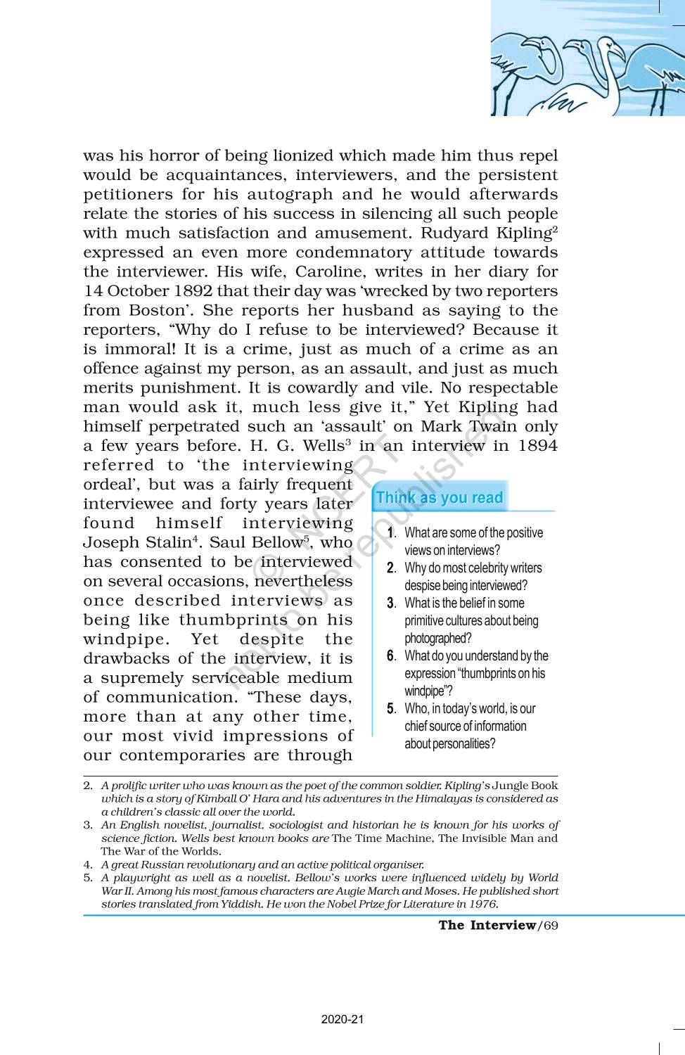 The time when students had limited options of choice for NCERT books wherein they need to go to the bookstore to buy the books but here at BeTrained.in, you can read the complete chapter-Prose 7 The Interview of NCERT books for class 12 Flamingo. If CBSE class 12 students are finding it hard to search for NCERT Flamingo books online, then this is the right place as we have provided the textbooks of NCERT chapter wise. These books are available on our website for free along with NCERT Solutions and Exemplar solutions.