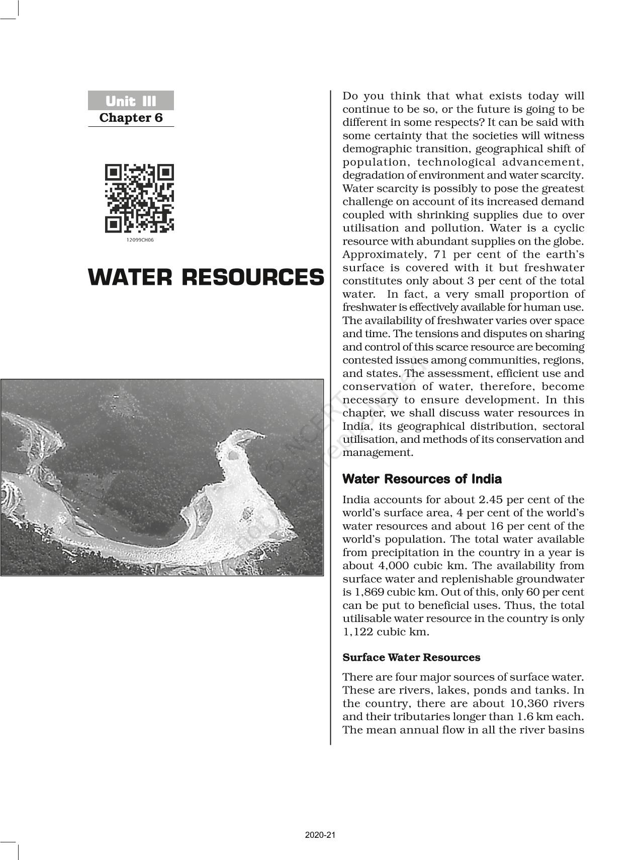 The time when students had limited options of choice for NCERT books wherein they need to go to the bookstore to buy the books but here at BeTrained.in, you can read the complete chapter-Water Resources of NCERT books for class 12 India People And Economy. If CBSE class 12 students are finding it hard to search for NCERT India People And Economy books online, then this is the right place as we have provided the textbooks of NCERT chapter wise. These books are available on our website for free along with NCERT Solutions and Exemplar solutions.