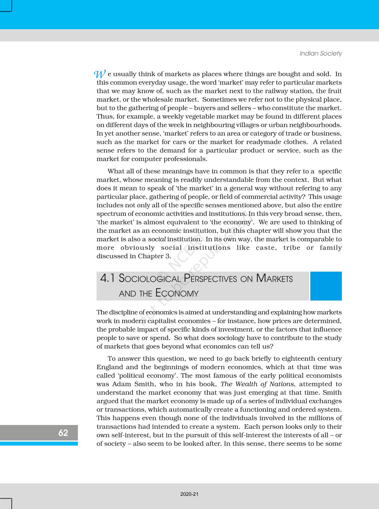 The time when students had limited options of choice for NCERT books wherein they need to go to the bookstore to buy the books but here at BeTrained.in, you can read the complete chapter-The Market As A Social Institution of NCERT books for class 12 Indian Society. If CBSE class 12 students are finding it hard to search for NCERT Indian Society books online, then this is the right place as we have provided the textbooks of NCERT chapter wise. These books are available on our website for free along with NCERT Solutions and Exemplar solutions.