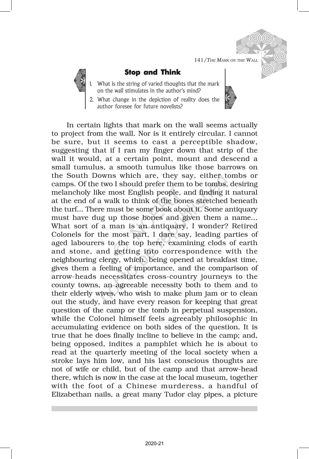 The time when students had limited options of choice for NCERT books wherein they need to go to the bookstore to buy the books but here at BeTrained.in, you can read the complete chapter-Non Fiction 2 The Mark On The Wall of NCERT books for class 12 Kaleidoscope. If CBSE class 12 students are finding it hard to search for NCERT Kaleidoscope books online, then this is the right place as we have provided the textbooks of NCERT chapter wise. These books are available on our website for free along with NCERT Solutions and Exemplar solutions.