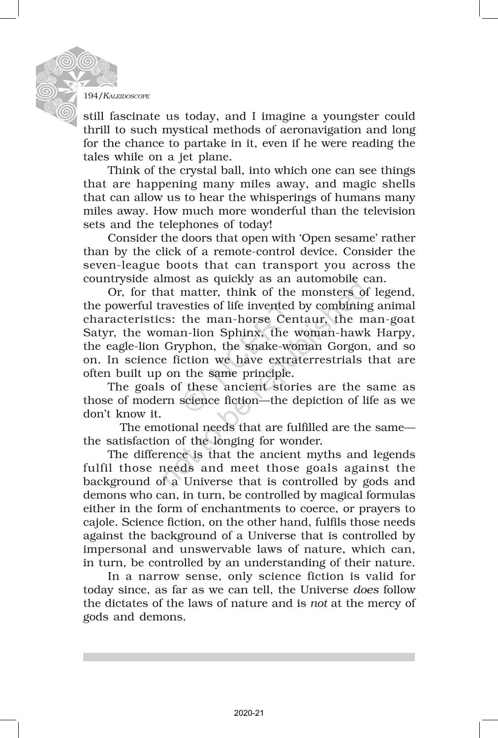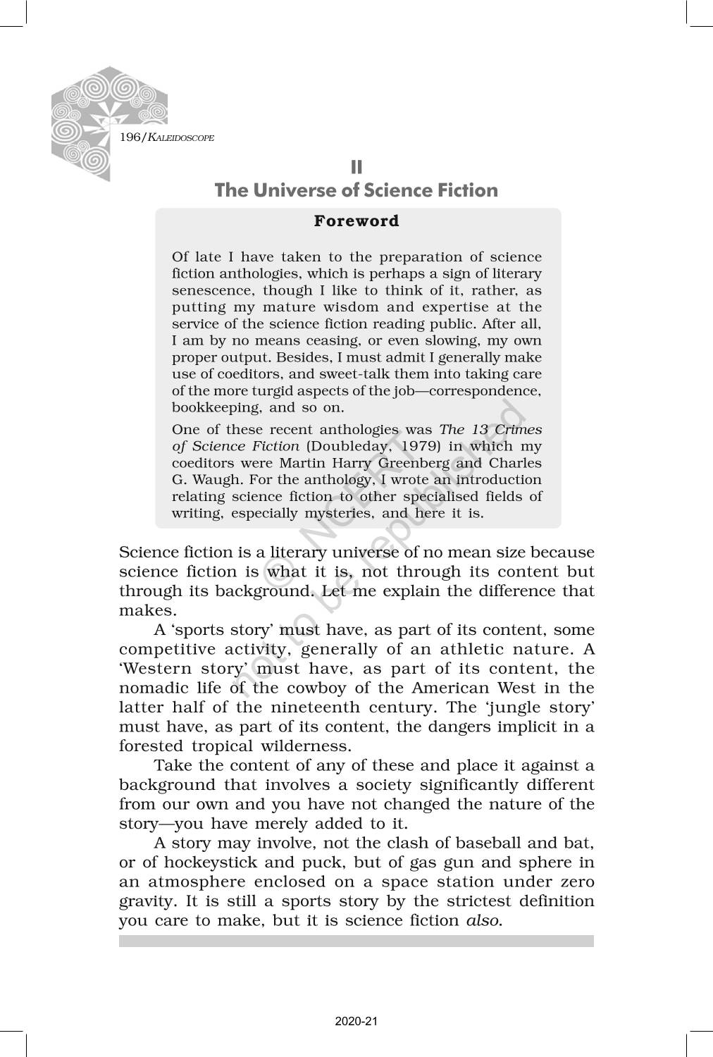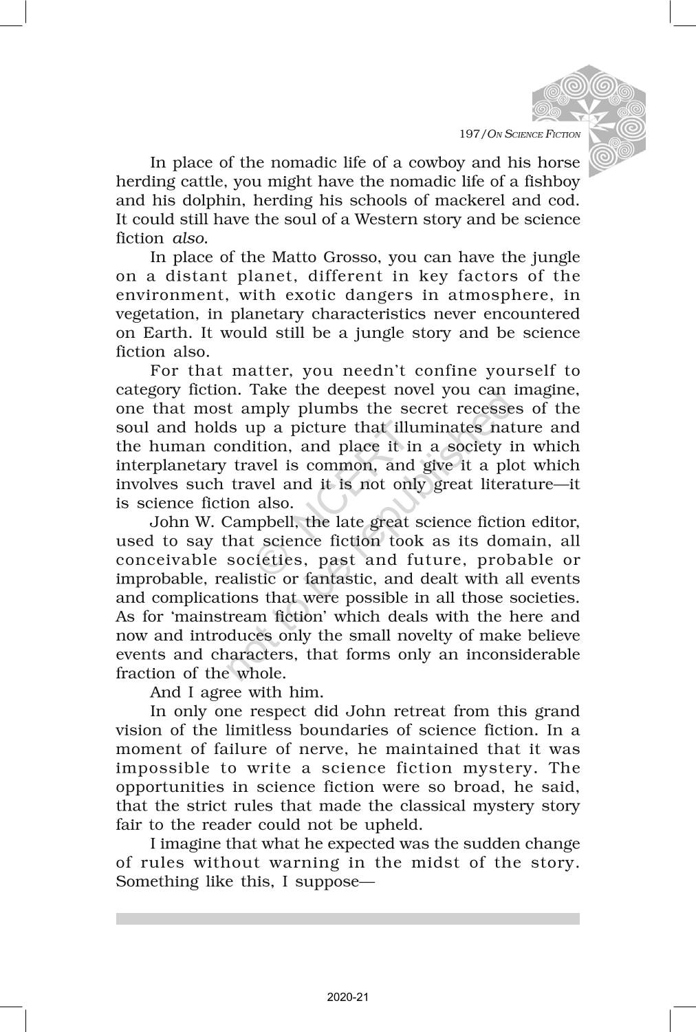 The time when students had limited options of choice for NCERT books wherein they need to go to the bookstore to buy the books but here at BeTrained.in, you can read the complete chapter-Non Fiction 6 On Science Fiction of NCERT books for class 12 Kaleidoscope. If CBSE class 12 students are finding it hard to search for NCERT Kaleidoscope books online, then this is the right place as we have provided the textbooks of NCERT chapter wise. These books are available on our website for free along with NCERT Solutions and Exemplar solutions.