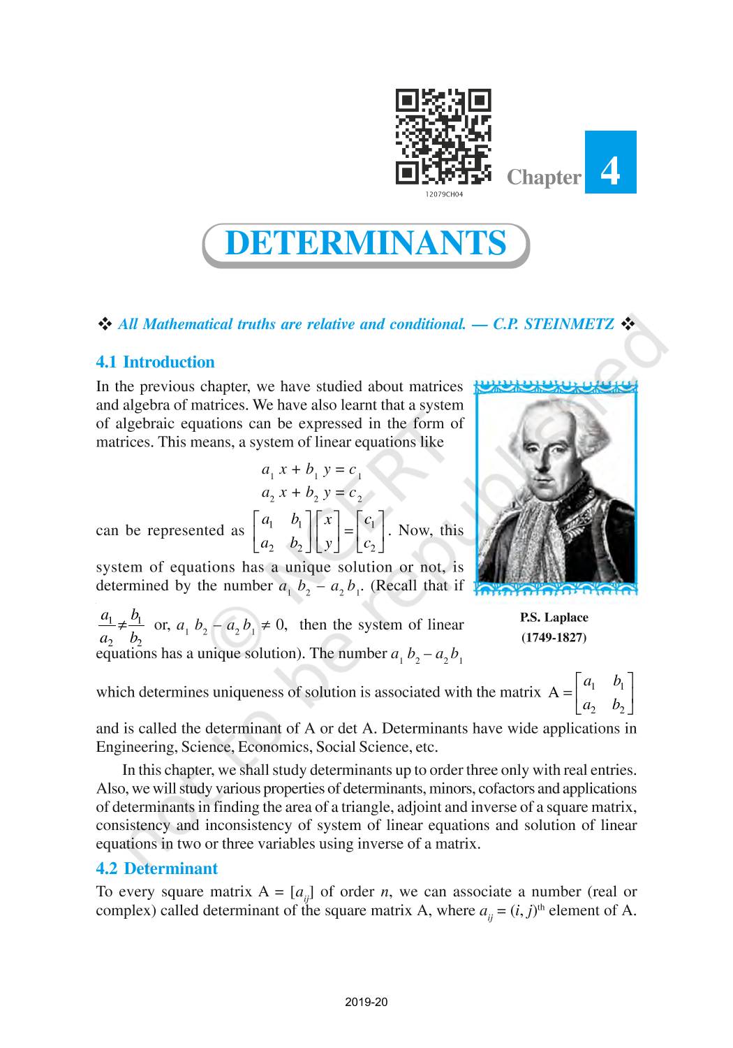 The time when students had limited options of choice for NCERT books wherein they need to go to the bookstore to buy the books but here at BeTrained.in, you can read the complete chapter-Determinants of NCERT books for class 12 Mathematics Part I. If CBSE class 12 students are finding it hard to search for NCERT Mathematics Part I books online, then this is the right place as we have provided the textbooks of NCERT chapter wise. These books are available on our website for free along with NCERT Solutions and Exemplar solutions.