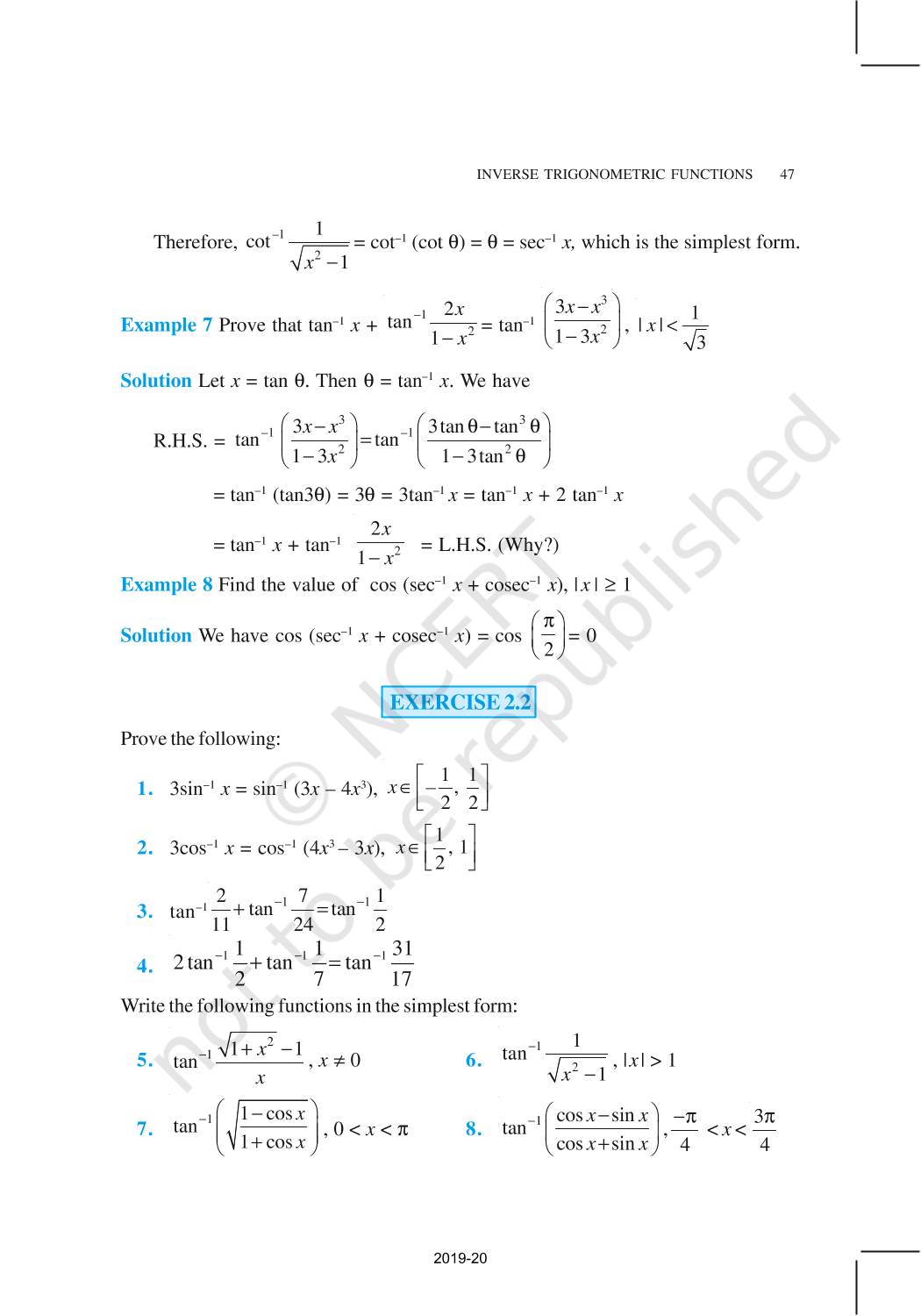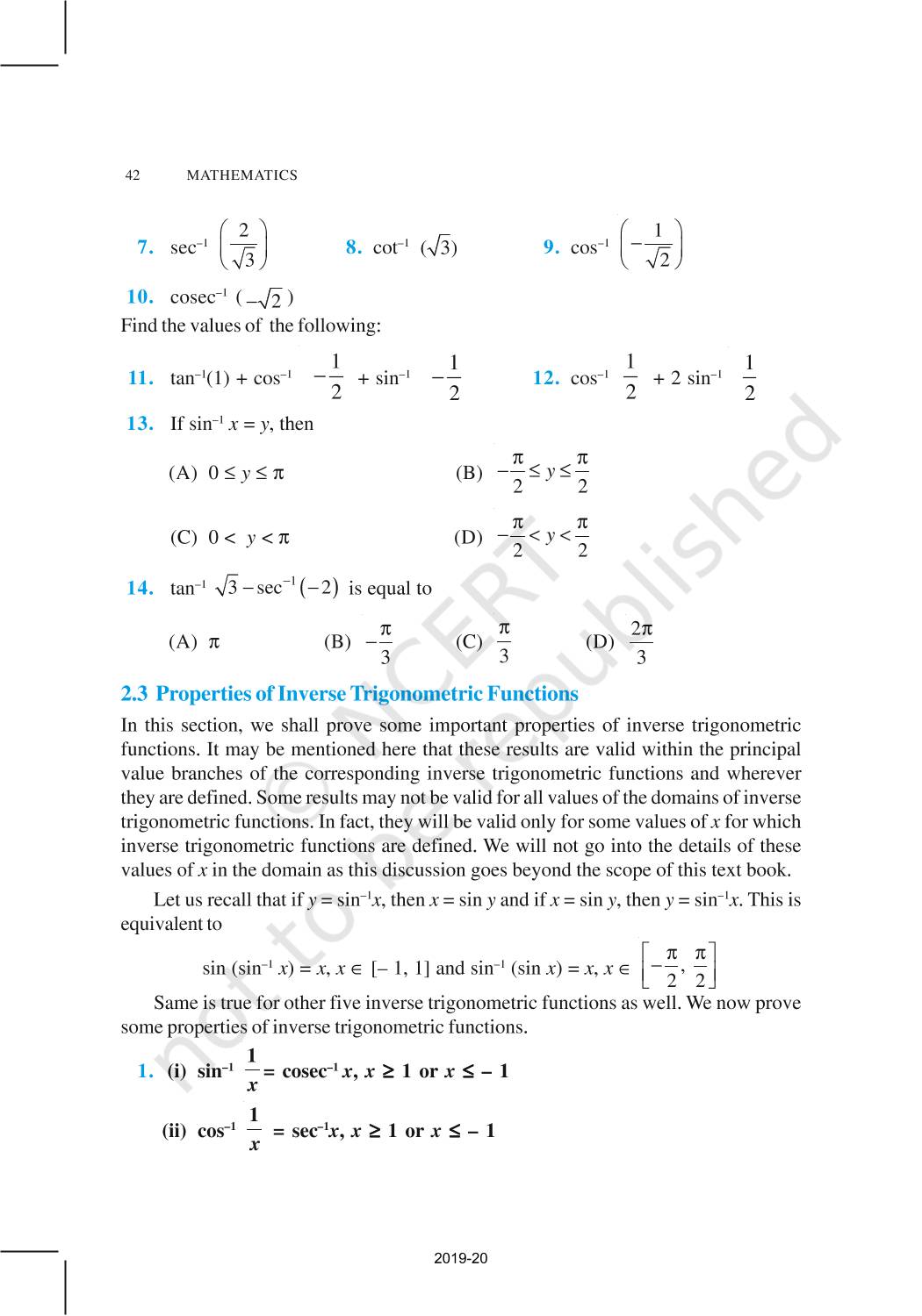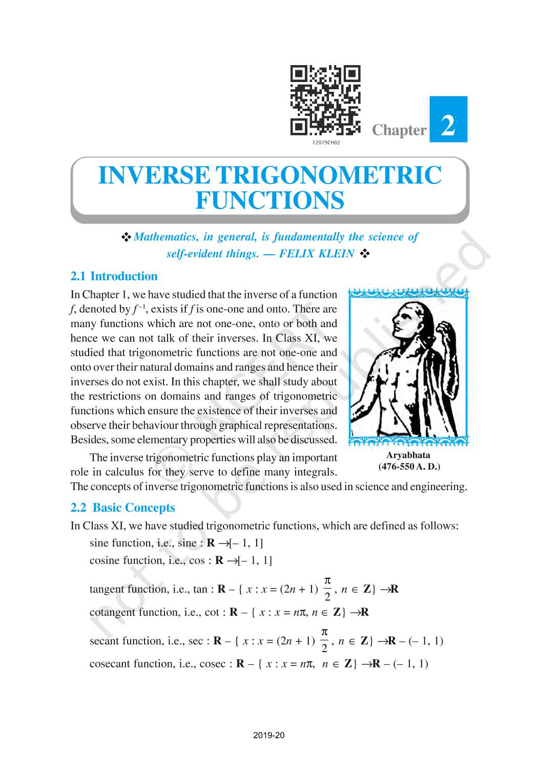 The time when students had limited options of choice for NCERT books wherein they need to go to the bookstore to buy the books but here at BeTrained.in, you can read the complete chapter-Inverse Trigonometric Functions of NCERT books for class 12 Mathematics Part I. If CBSE class 12 students are finding it hard to search for NCERT Mathematics Part I books online, then this is the right place as we have provided the textbooks of NCERT chapter wise. These books are available on our website for free along with NCERT Solutions and Exemplar solutions.