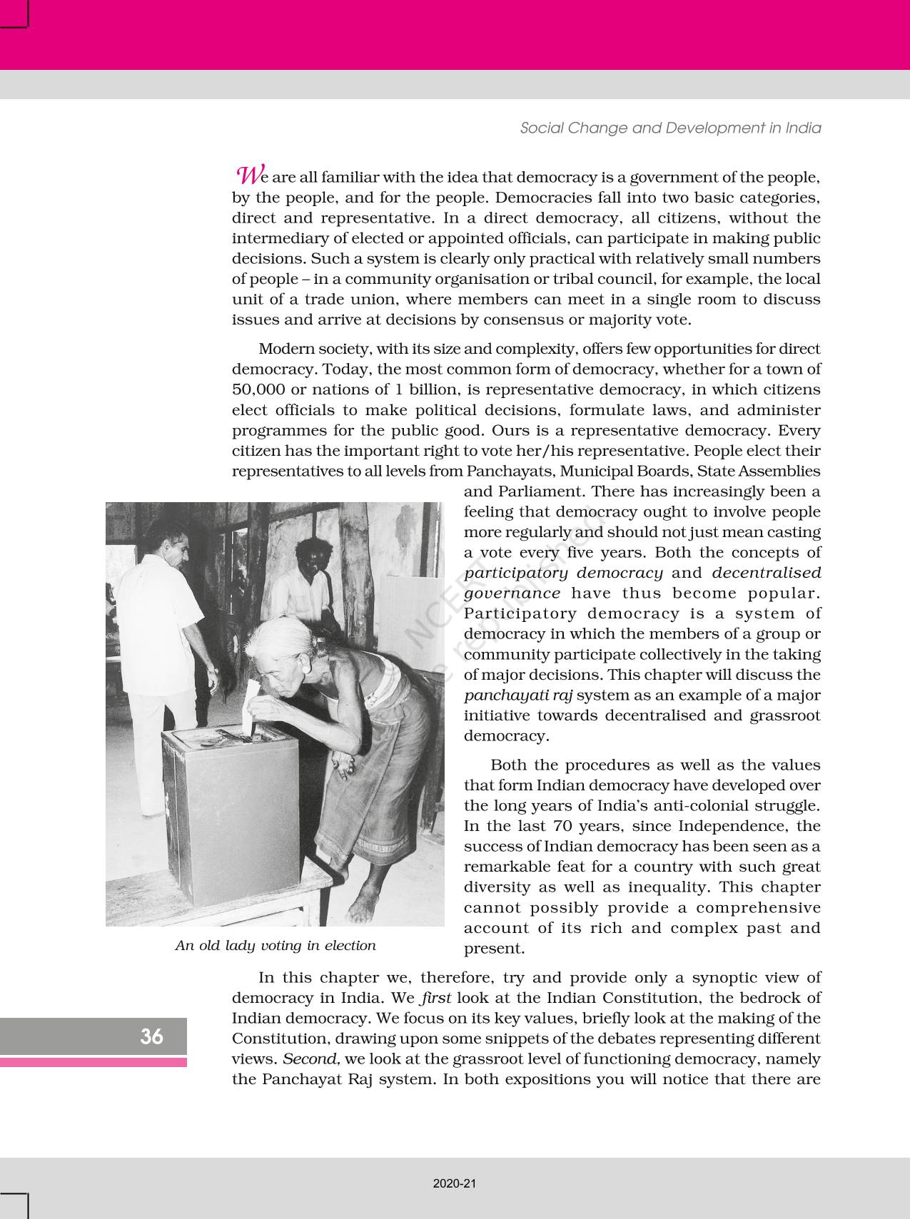 The time when students had limited options of choice for NCERT books wherein they need to go to the bookstore to buy the books but here at BeTrained.in, you can read the complete chapter-The Story Of Indian Democracy of NCERT books for class 12 Social Change And Development In India. If CBSE class 12 students are finding it hard to search for NCERT Social Change And Development In India books online, then this is the right place as we have provided the textbooks of NCERT chapter wise. These books are available on our website for free along with NCERT Solutions and Exemplar solutions.