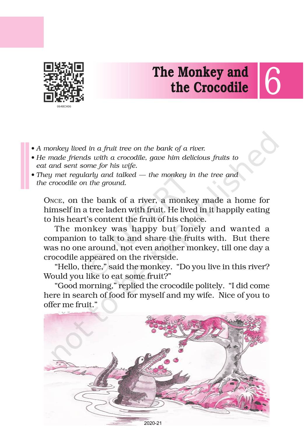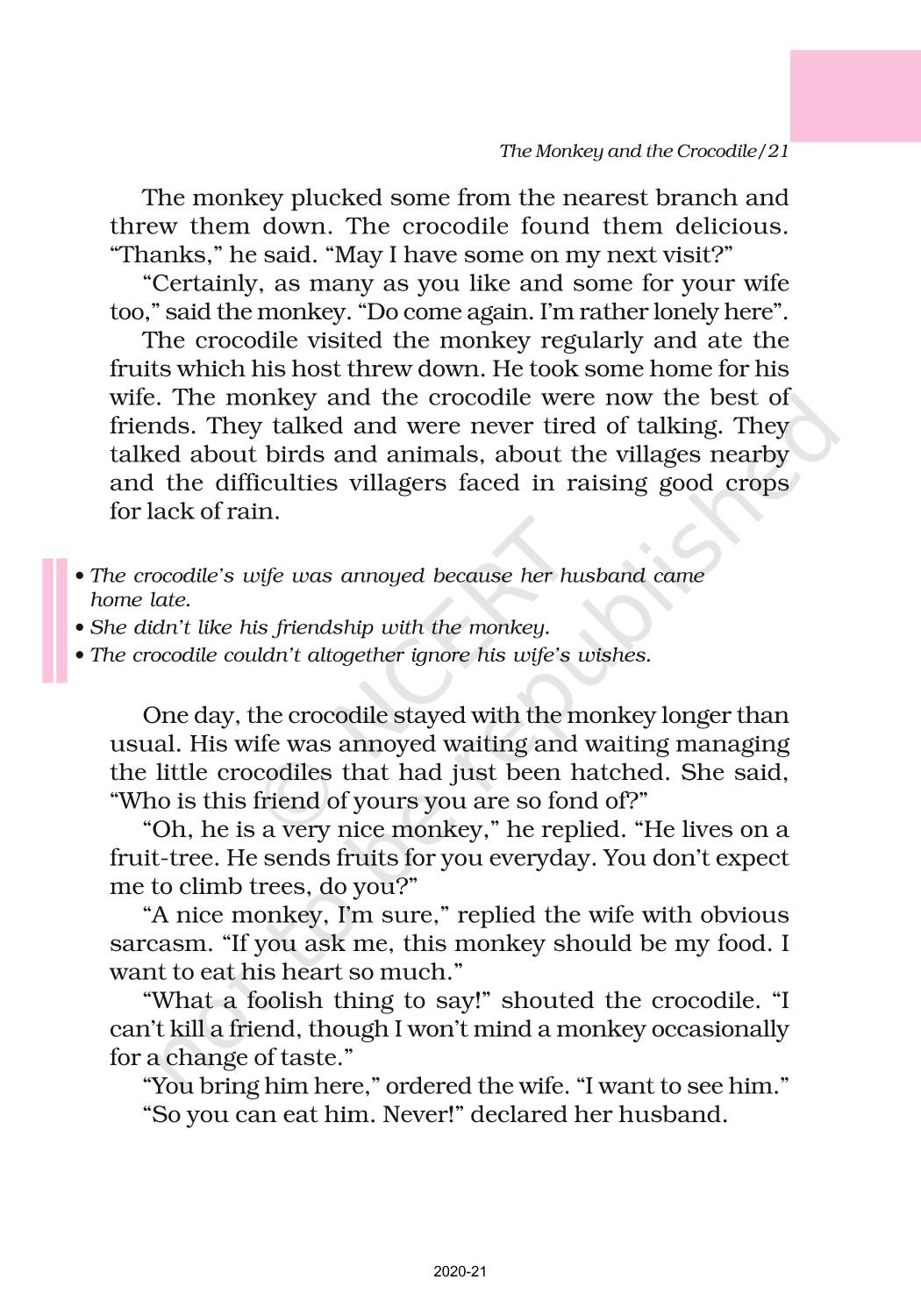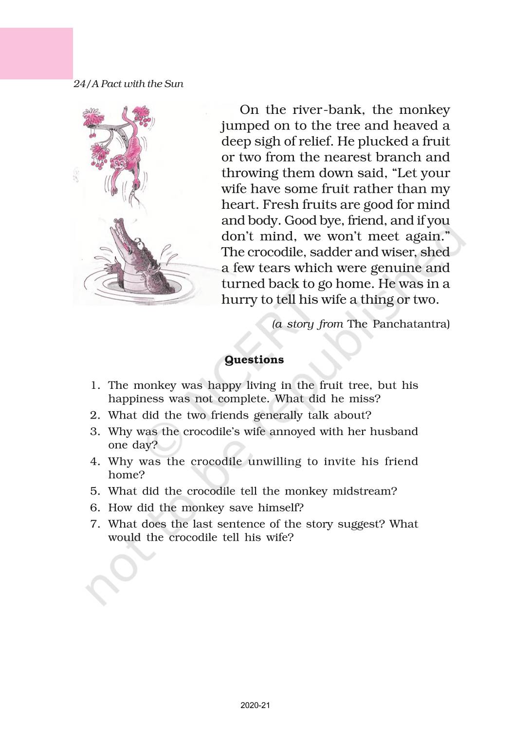 The time when students had limited options of choice for NCERT books wherein they need to go to the bookstore to buy the books but here at BeTrained.in, you can read the complete chapter-The Monkey And The Crocodile of NCERT books for class 6 English A Pact With The Sun. If CBSE class 6 students are finding it hard to search for NCERT English A Pact With The Sun books online, then this is the right place as we have provided the textbooks of NCERT chapter wise. These books are available on our website for free along with NCERT Solutions and Exemplar solutions.