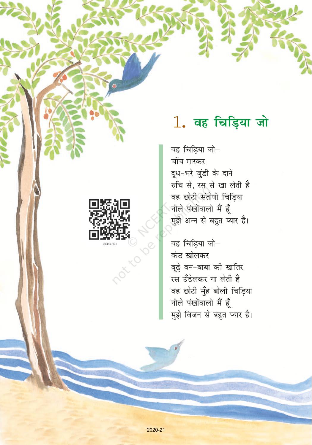 The time when students had limited options of choice for NCERT books wherein they need to go to the bookstore to buy the books but here at BeTrained.in, you can read the complete chapter-Vah Chidiya Jo of NCERT books for class 6 Hindi Vasant Part 1. If CBSE class 6 students are finding it hard to search for NCERT Hindi Vasant Part 1 books online, then this is the right place as we have provided the textbooks of NCERT chapter wise. These books are available on our website for free along with NCERT Solutions and Exemplar solutions.