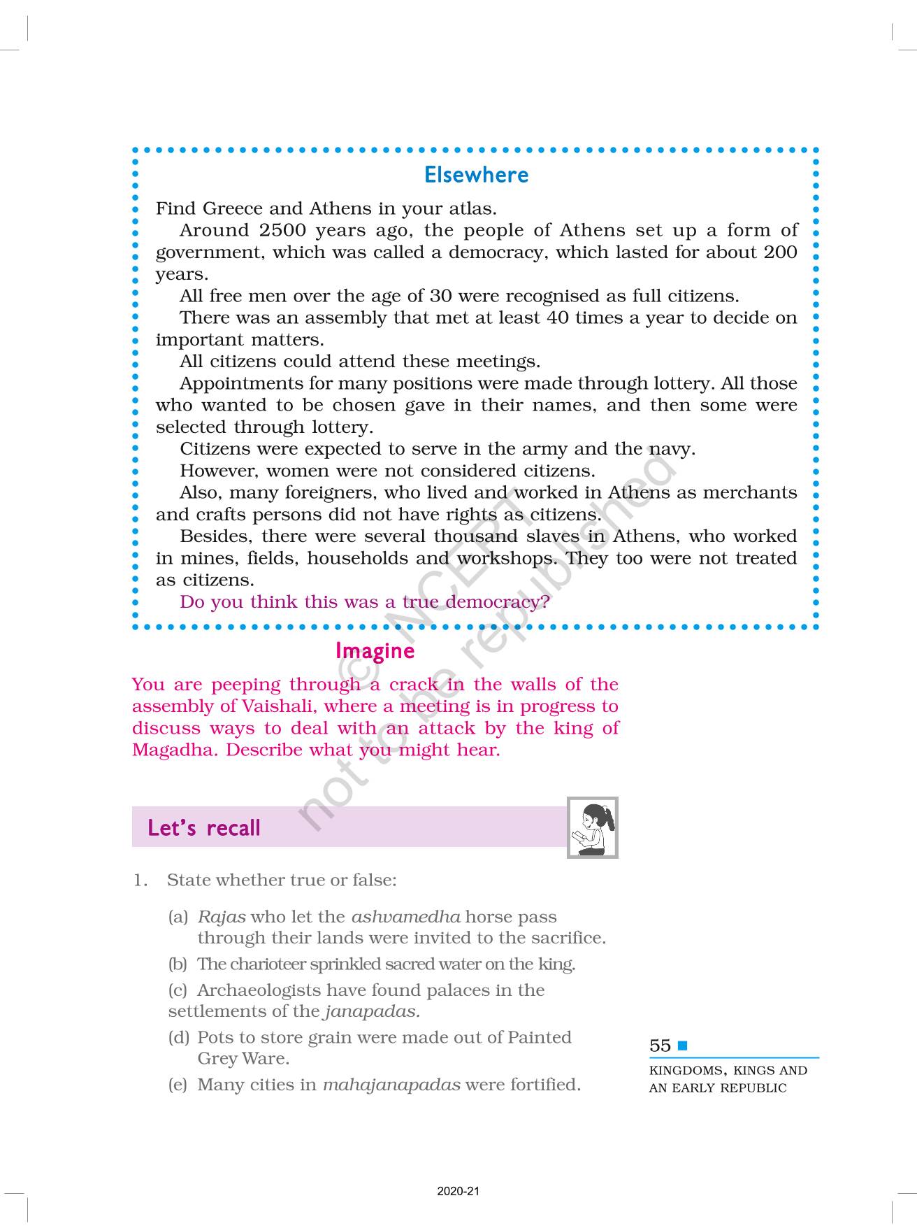The time when students had limited options of choice for NCERT books wherein they need to go to the bookstore to buy the books but here at BeTrained.in, you can read the complete chapter-Kingdoms Kings And An Early Republic of NCERT books for class 6 History Our Pasts I. If CBSE class 6 students are finding it hard to search for NCERT History Our Pasts I books online, then this is the right place as we have provided the textbooks of NCERT chapter wise. These books are available on our website for free along with NCERT Solutions and Exemplar solutions.