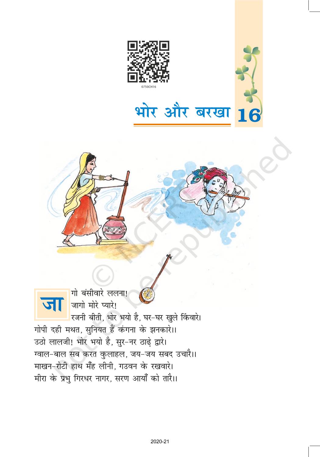 The time when students had limited options of choice for NCERT books wherein they need to go to the bookstore to buy the books but here at BeTrained.in, you can read the complete chapter-Bhor Aur Barkha of NCERT books for class 7 Hindi Vasant Part 2. If CBSE class 7 students are finding it hard to search for NCERT Hindi Vasant Part 2 books online, then this is the right place as we have provided the textbooks of NCERT chapter wise. These books are available on our website for free along with NCERT Solutions and Exemplar solutions.