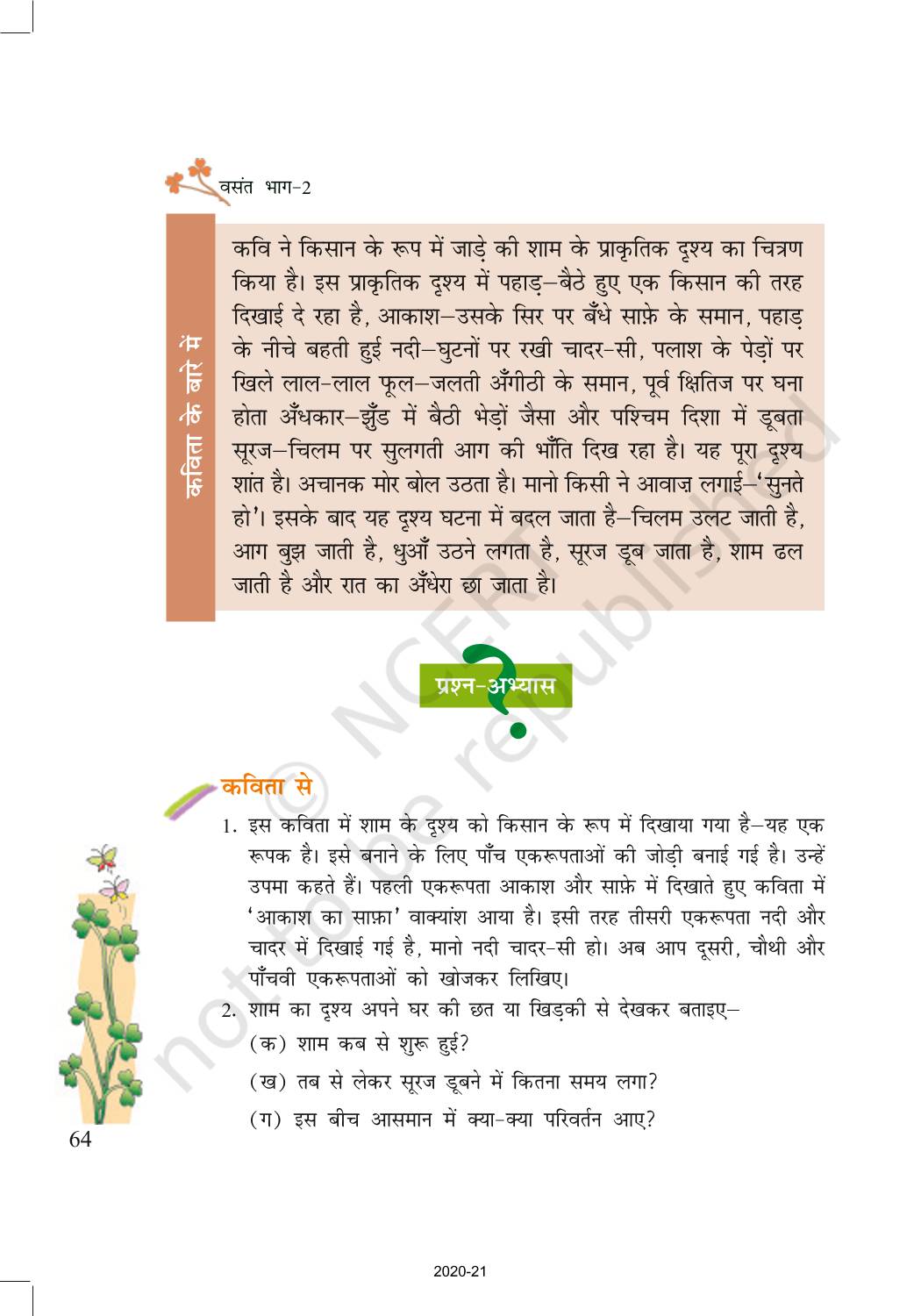 The time when students had limited options of choice for NCERT books wherein they need to go to the bookstore to buy the books but here at BeTrained.in, you can read the complete chapter-Shaam Ek Kisan of NCERT books for class 7 Hindi Vasant Part 2. If CBSE class 7 students are finding it hard to search for NCERT Hindi Vasant Part 2 books online, then this is the right place as we have provided the textbooks of NCERT chapter wise. These books are available on our website for free along with NCERT Solutions and Exemplar solutions.