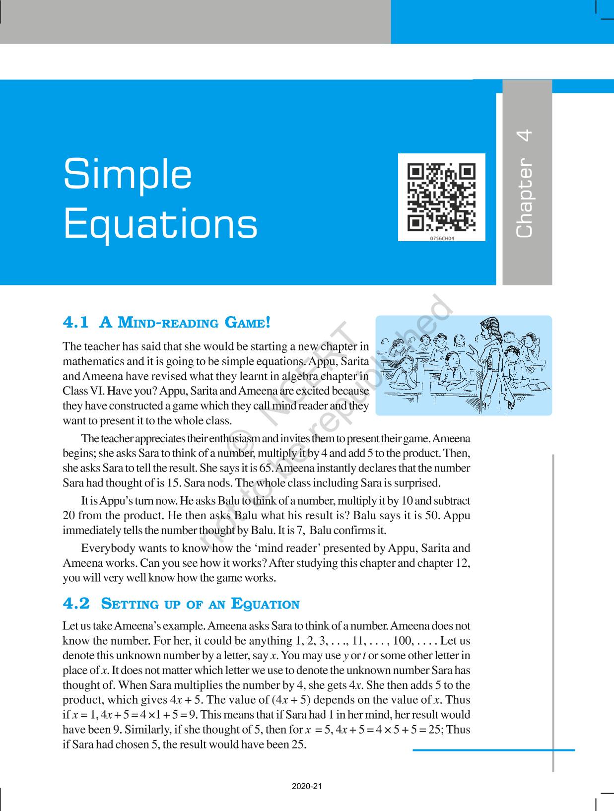 The time when students had limited options of choice for NCERT books wherein they need to go to the bookstore to buy the books but here at BeTrained.in, you can read the complete chapter-Simple Equations of NCERT books for class 7 Mathematics. If CBSE class 7 students are finding it hard to search for NCERT Mathematics books online, then this is the right place as we have provided the textbooks of NCERT chapter wise. These books are available on our website for free along with NCERT Solutions and Exemplar solutions.