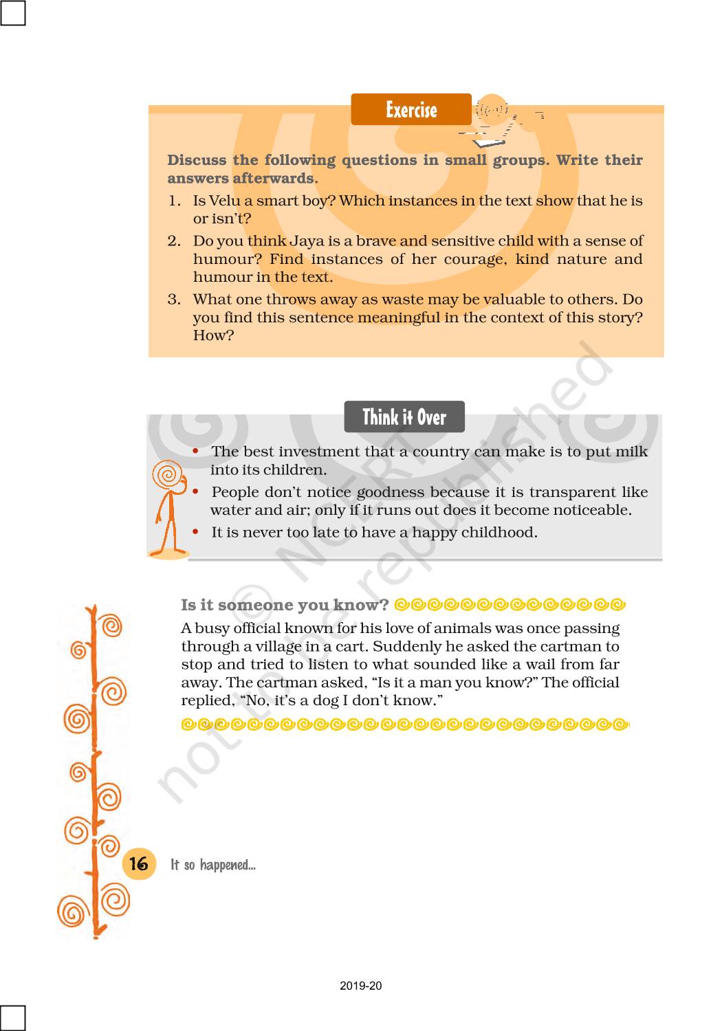 BeTrained.in has brought the NCERT books for class 8 English It So Happened where you can find every topic explained in a detailed way. These books are recommended by CBSE and some other state boards. Most of the teachers also use these books for teaching in schools. It is also used as a reference to prepare the questions for mid-term and final exams. The topics are explained in a very easy language along with examples and diagrams. Also, ideal for comprehensive and thorough learning to develop a clear concept. The chapters in the books have illustrative examples and practice problems for getting a hold of any kind of concept.