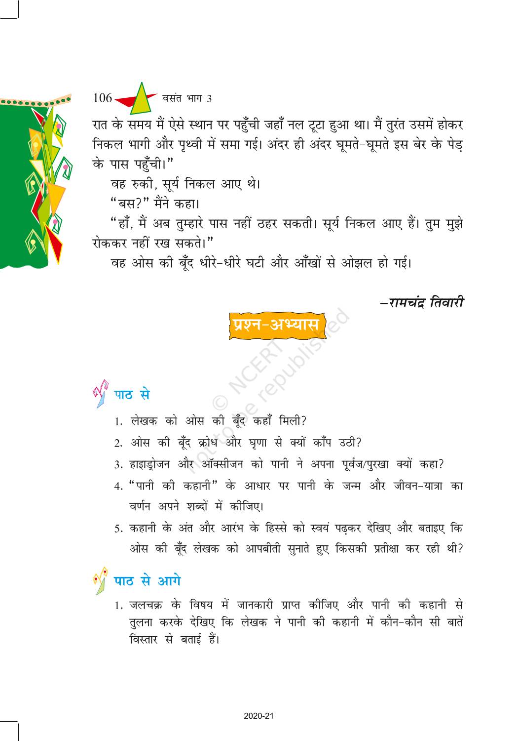 The time when students had limited options of choice for NCERT books wherein they need to go to the bookstore to buy the books but here at BeTrained.in, you can read the complete chapter-Paani Ki Kahani of NCERT books for class 8 Hindi Vasant Part 3. If CBSE class 8 students are finding it hard to search for NCERT Hindi Vasant Part 3 books online, then this is the right place as we have provided the textbooks of NCERT chapter wise. These books are available on our website for free along with NCERT Solutions and Exemplar solutions.